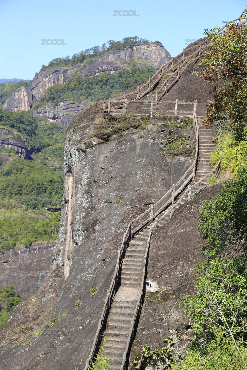 中国福建省武夷山,天游峰景区蜿蜒而上的登山道