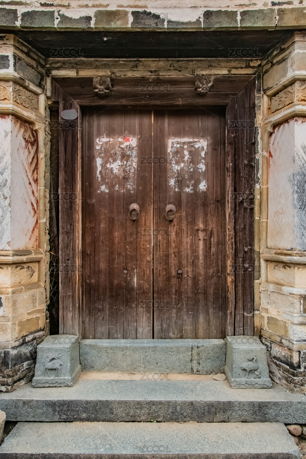 中国江南古镇的徽派建筑庭院木门