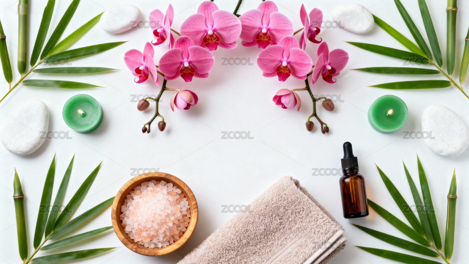 水疗概念,浮花,挥发油,盐和空气清新剂