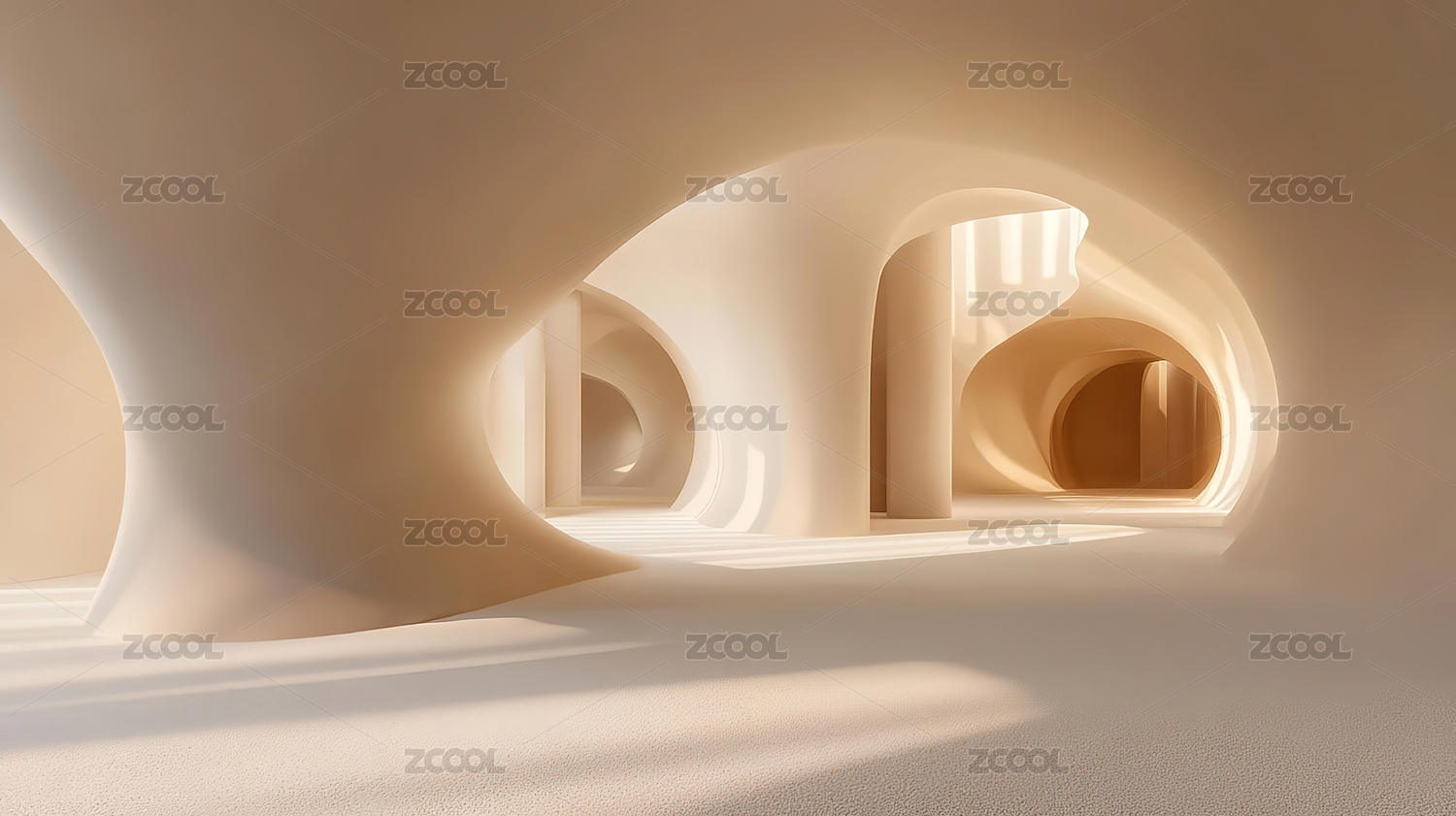 柔和光影下的抽象建筑艺术空间