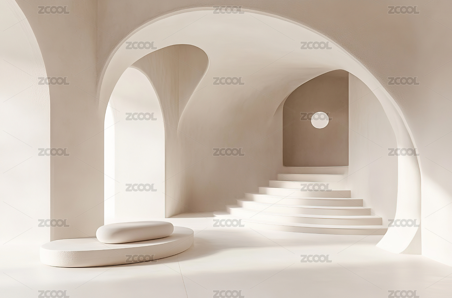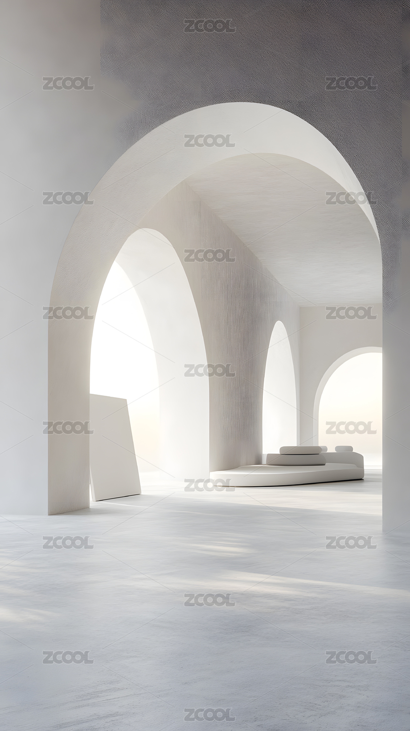 极简主义白色拱形建筑室内设计