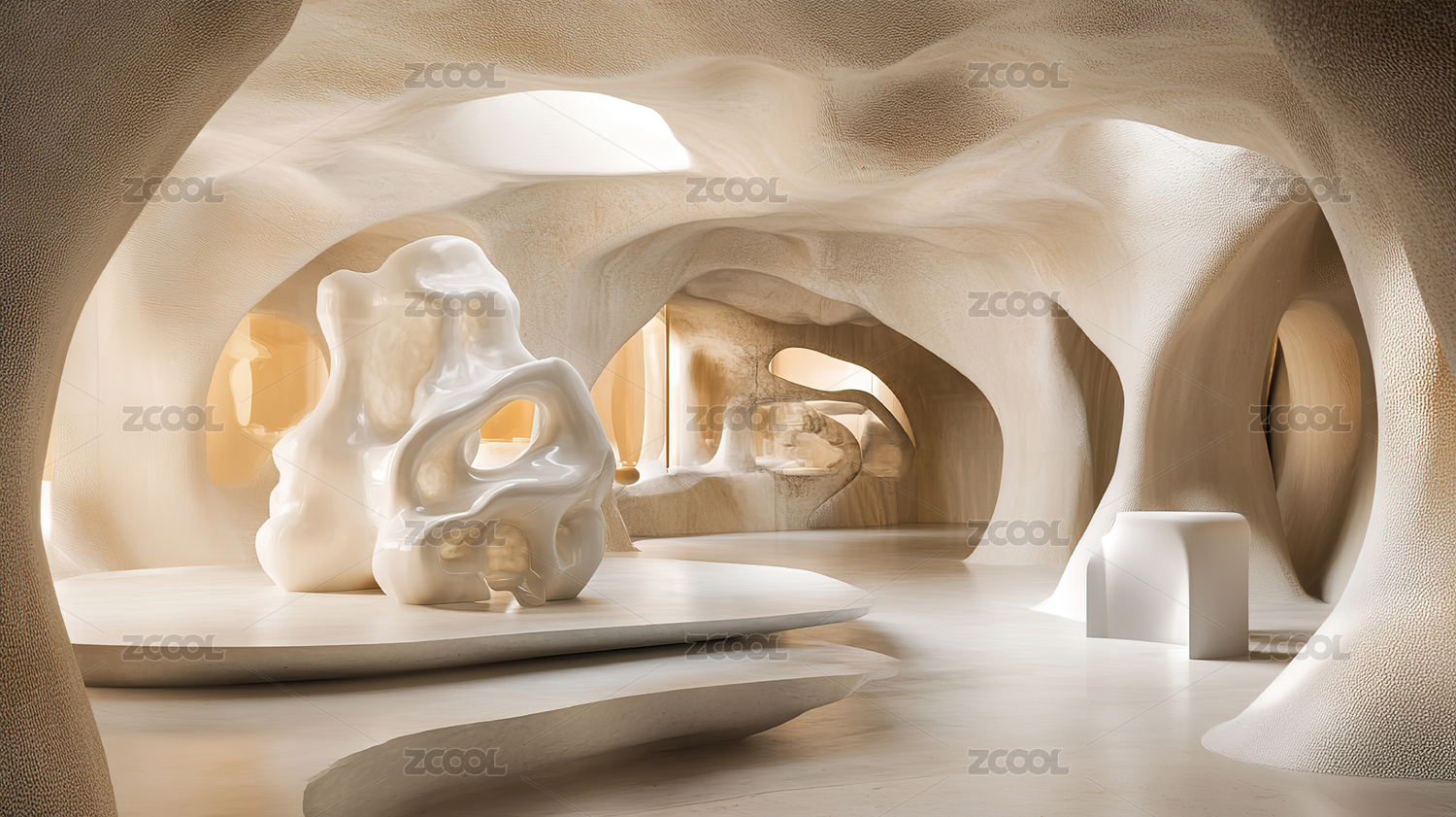 极简主义的白色洞穴室内设计