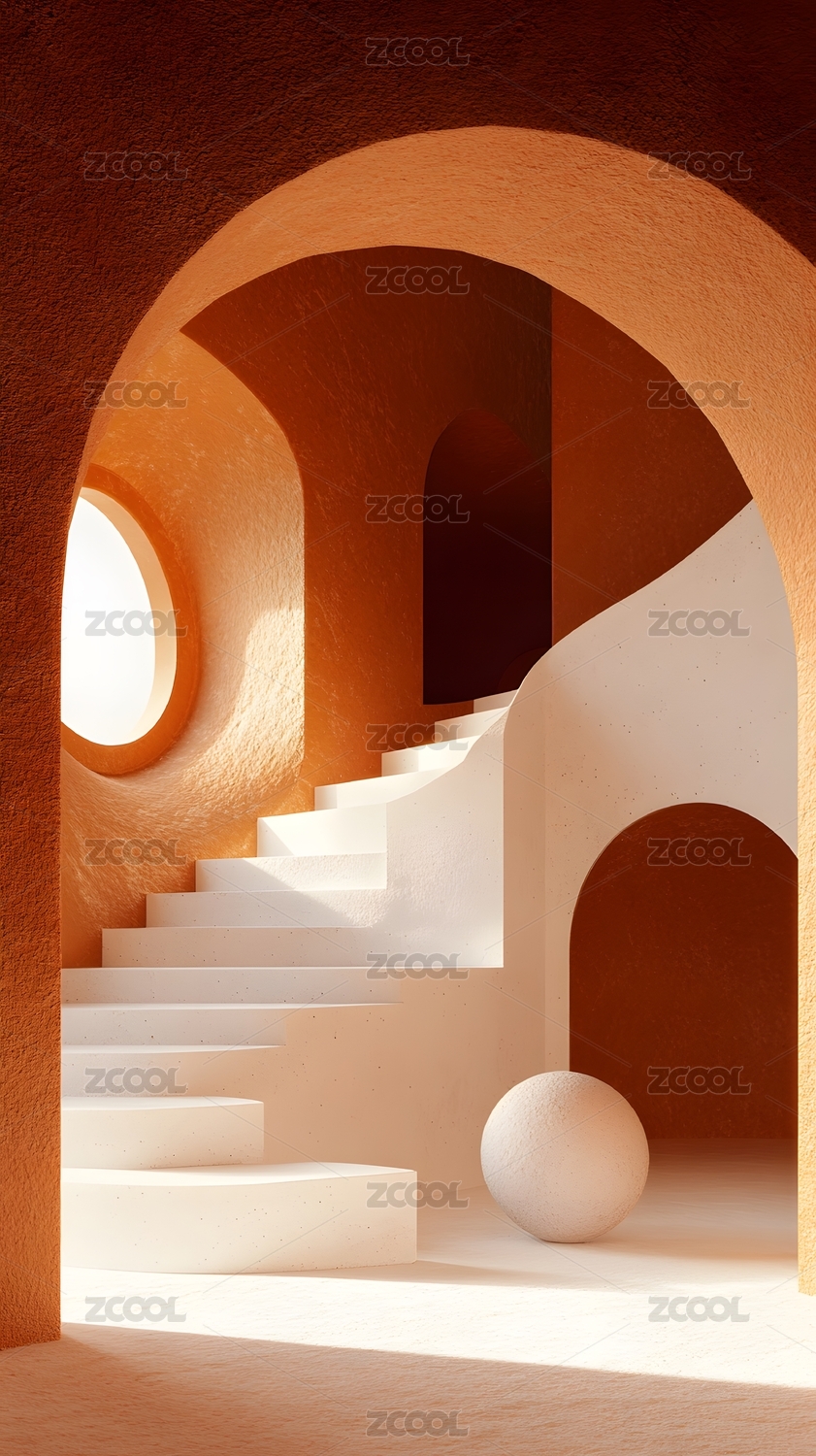 虚拟极简风格弧形室内平台空间背景