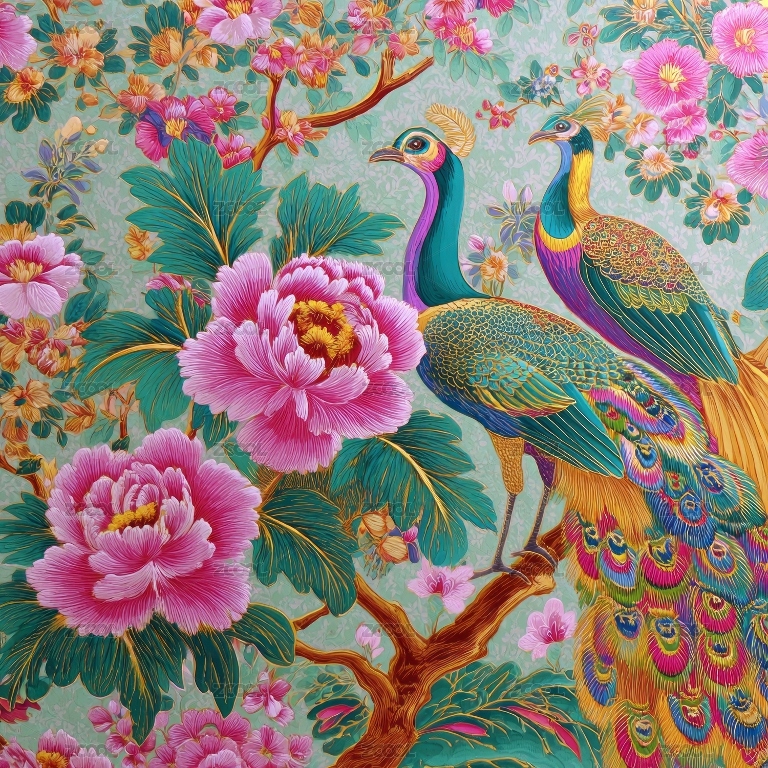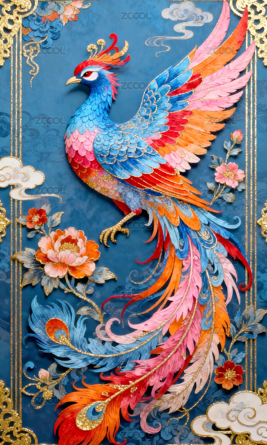 壁画,国潮,国潮风,国风,国画,孔雀,鸟,神话,神鸟,神兽