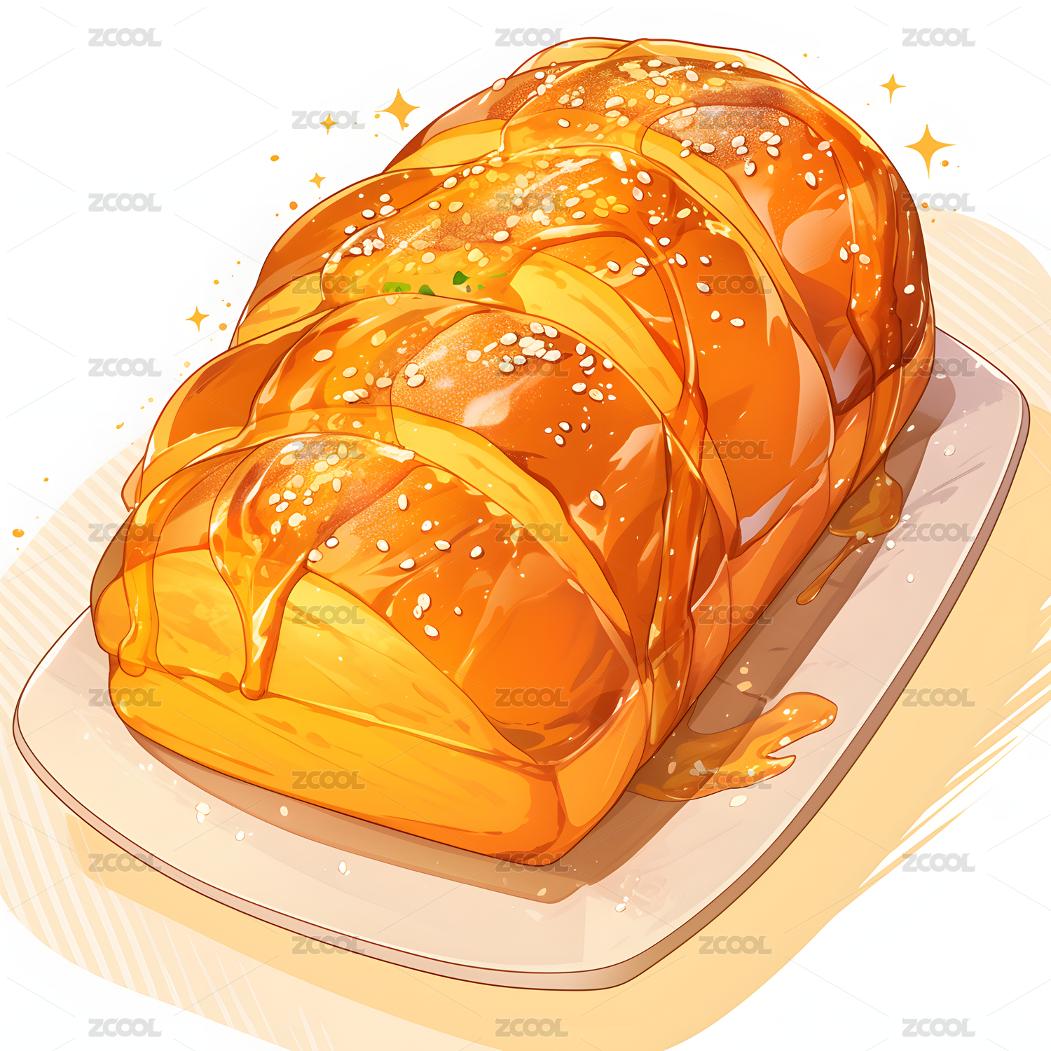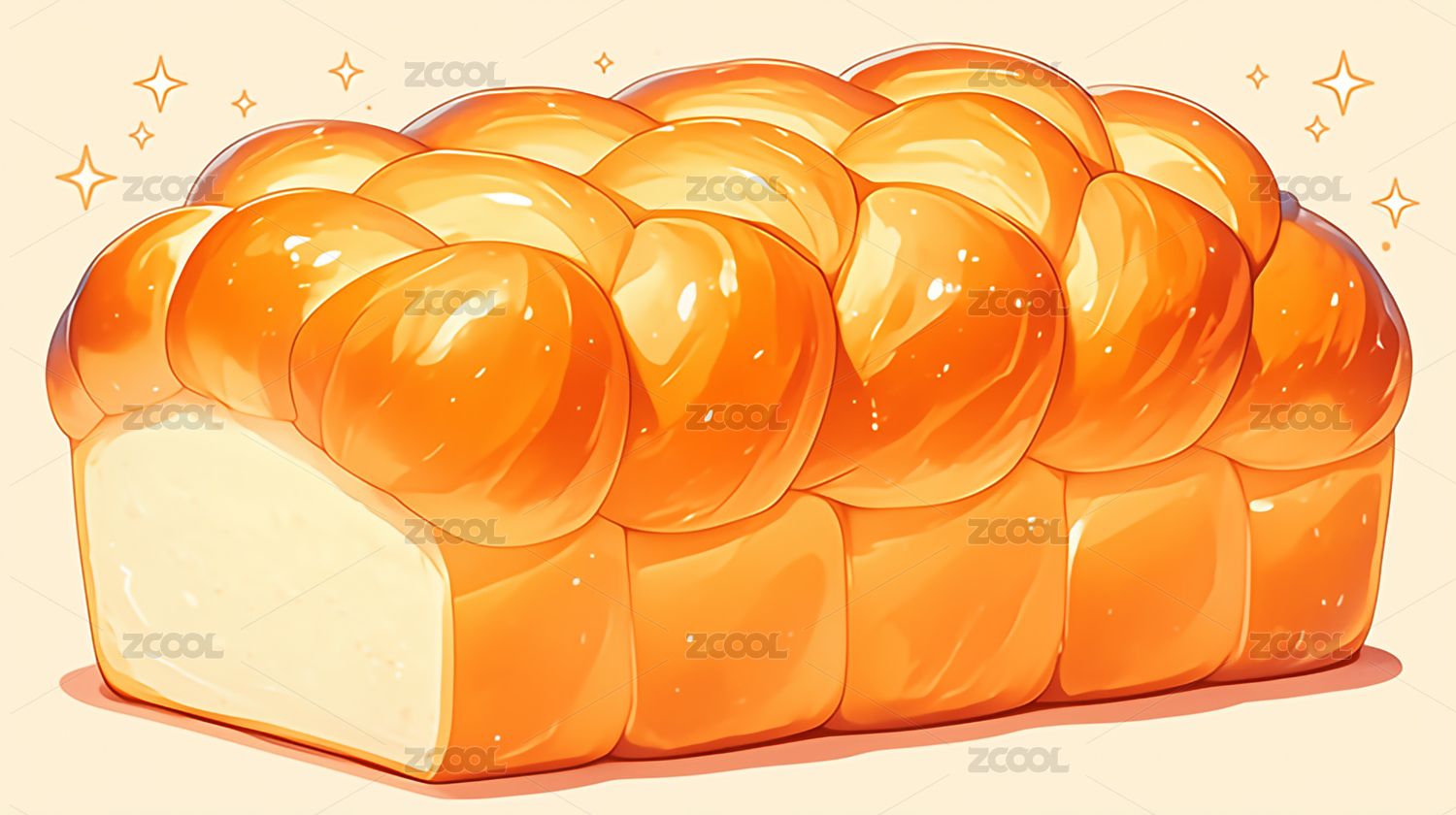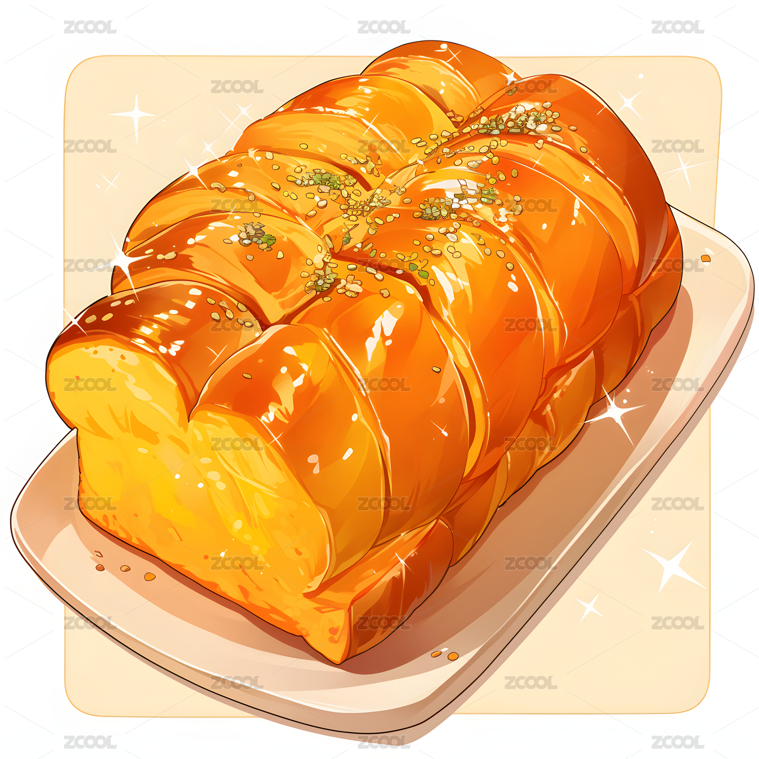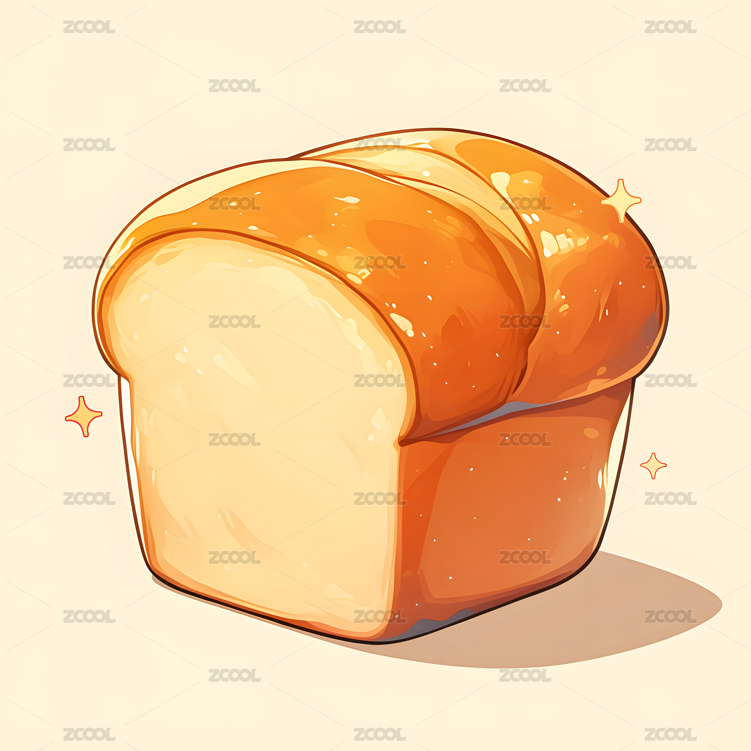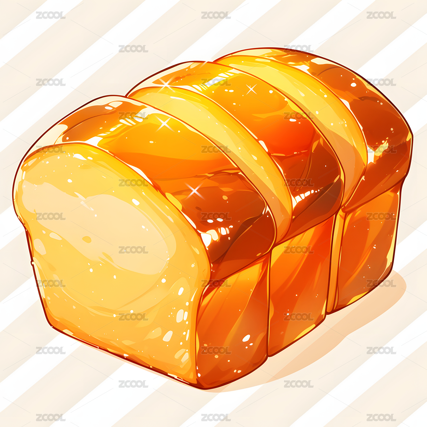 新鲜焦黄色吐司面包面包片3D卡通食品插画