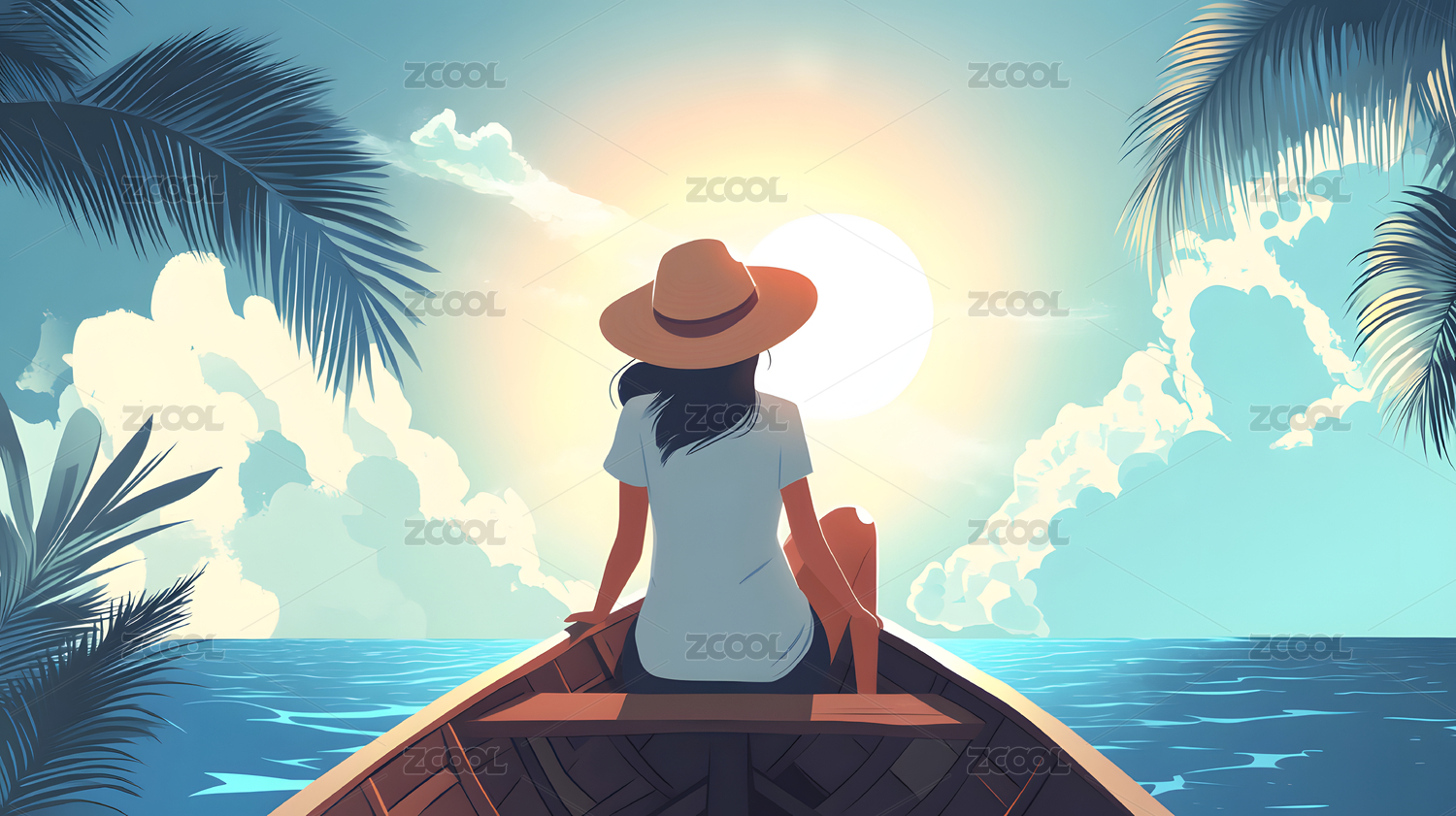 AIGC202404,旅行,插画,风景,风光,扁平,户外,海岛,海浪,海边