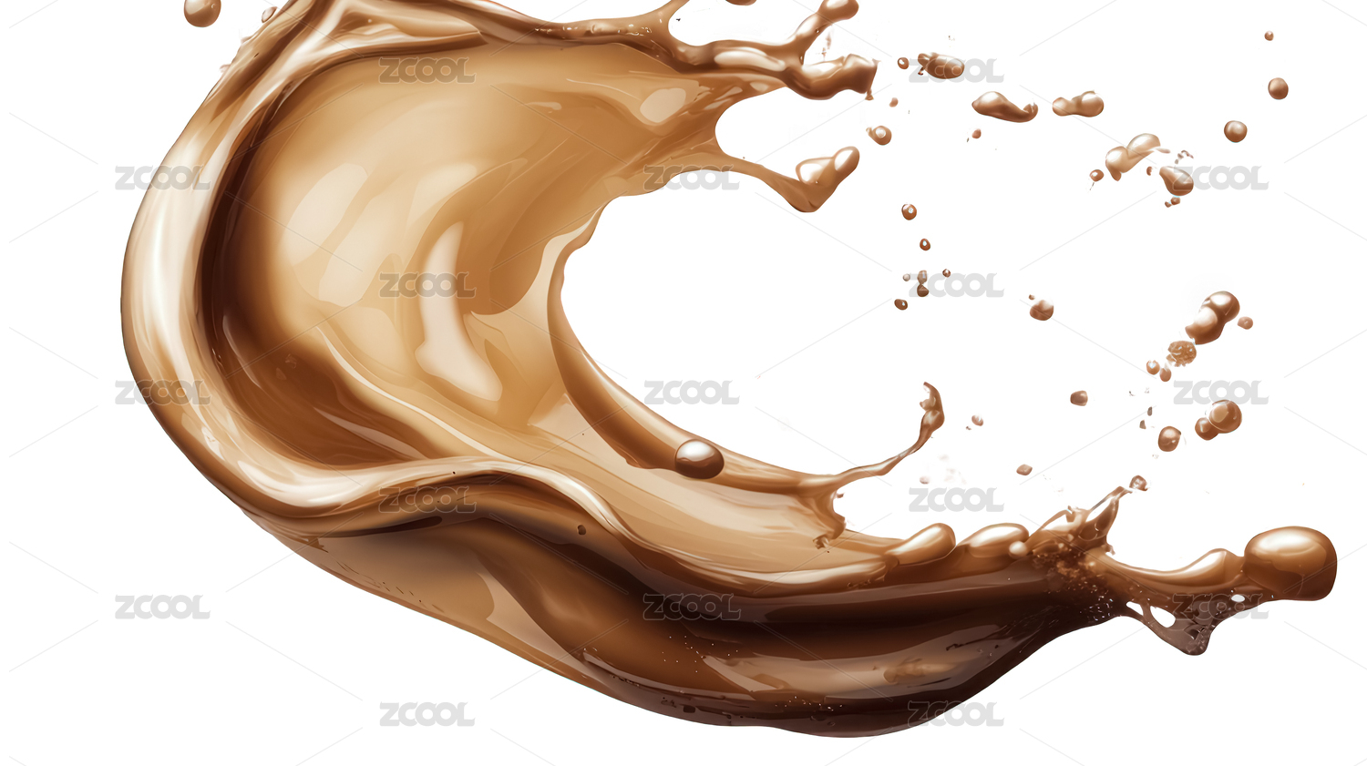 美味的巧克力飞溅在孤立的白色背景,诱人美