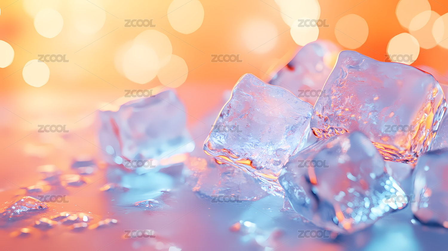 彩色背景上散落的冰块