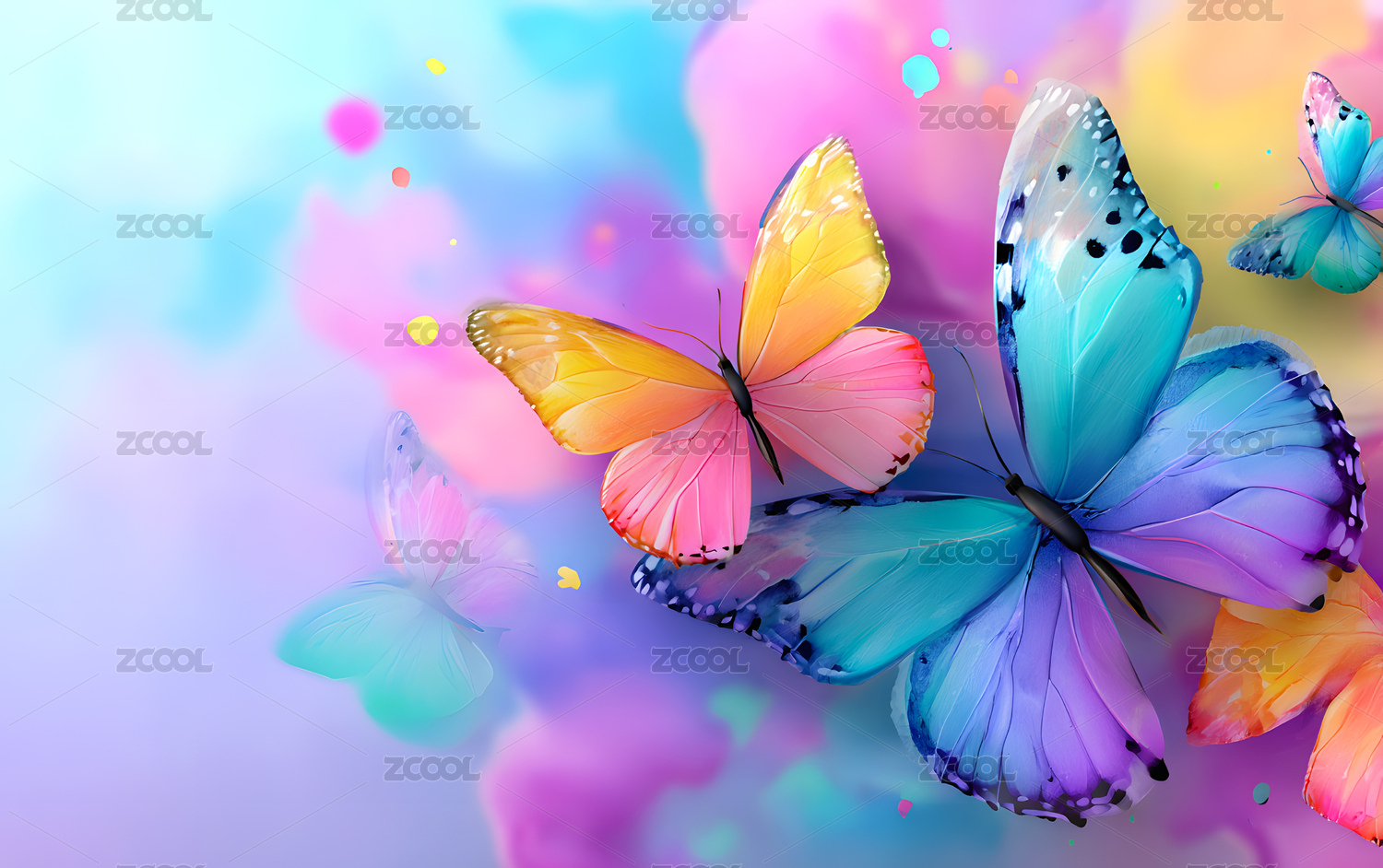 蝴蝶艺术感质感厚涂笔触抽象装饰画背景