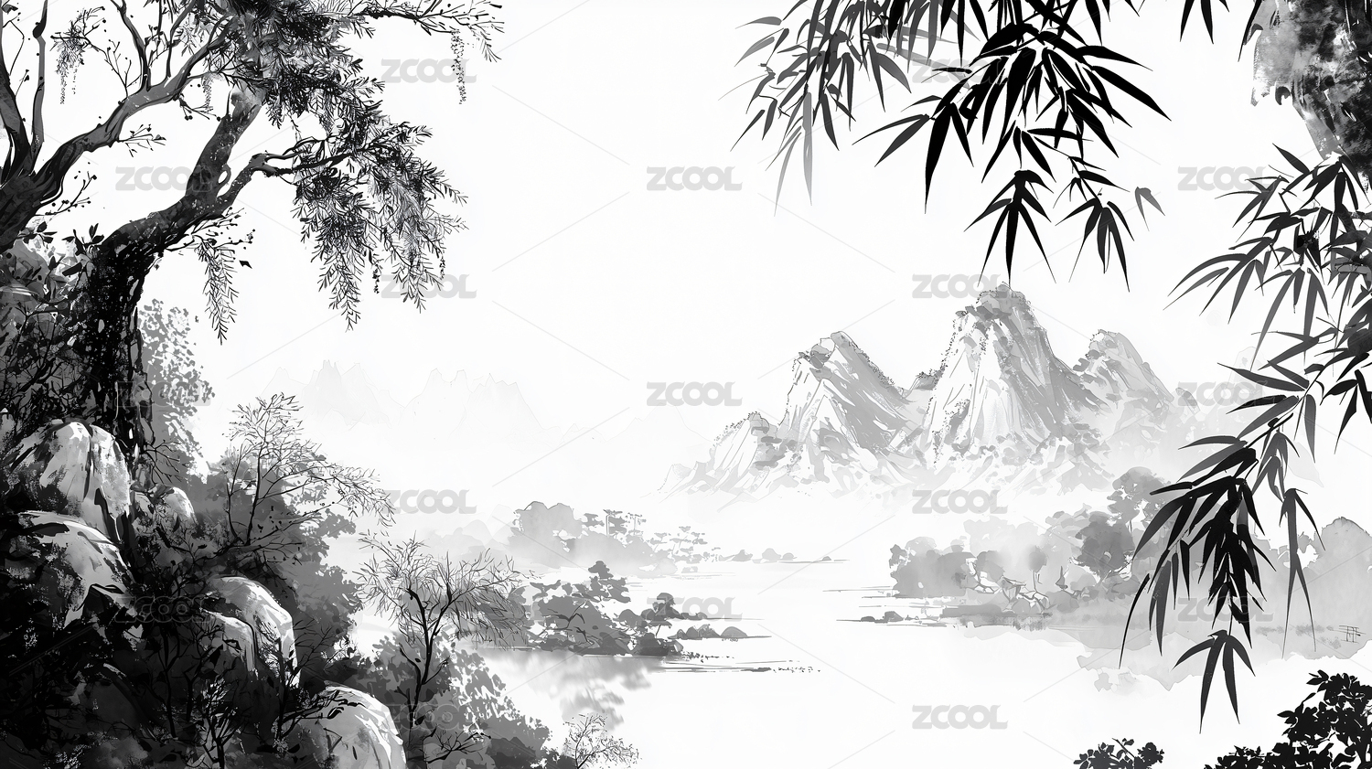水墨风格山水竹林背景