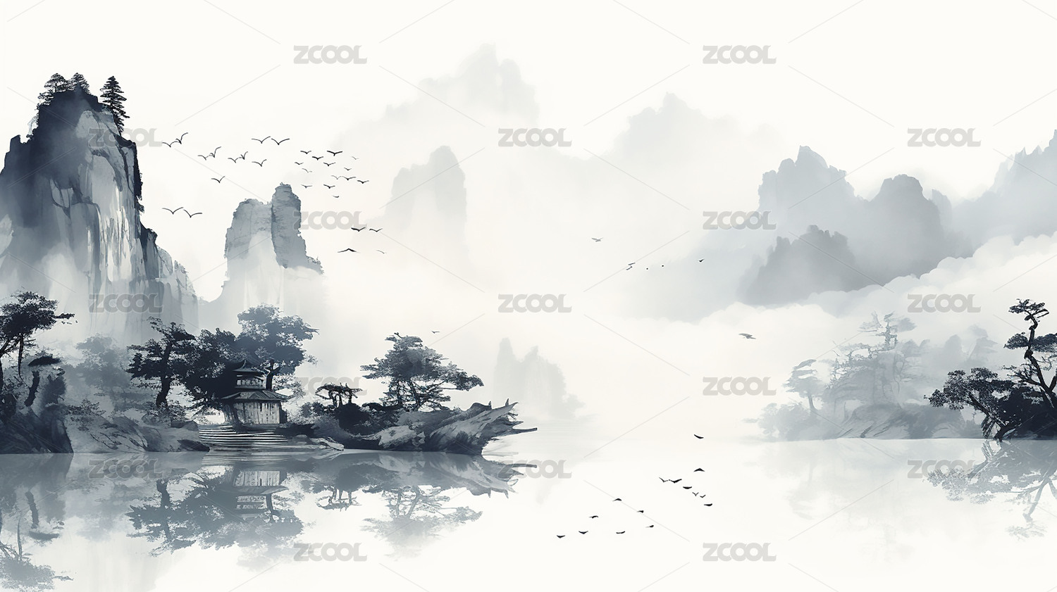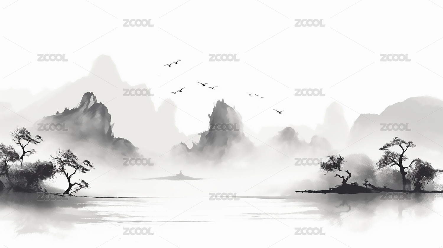 简约水墨山水背景