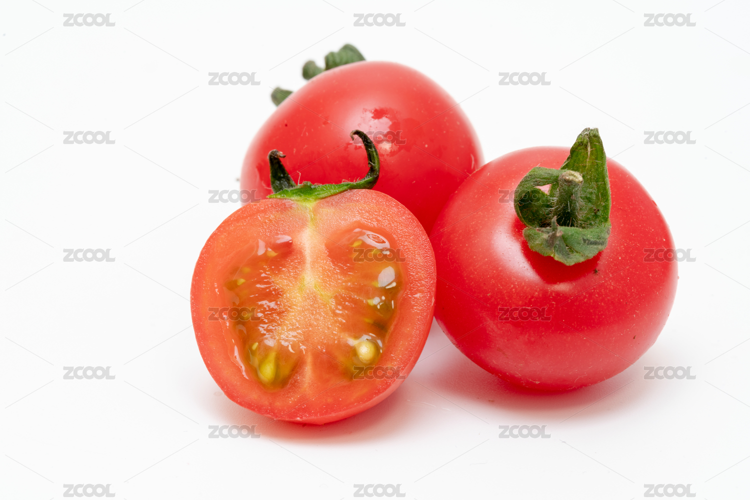 白色背景一个完整的西红柿和一个切开的西红柿食材