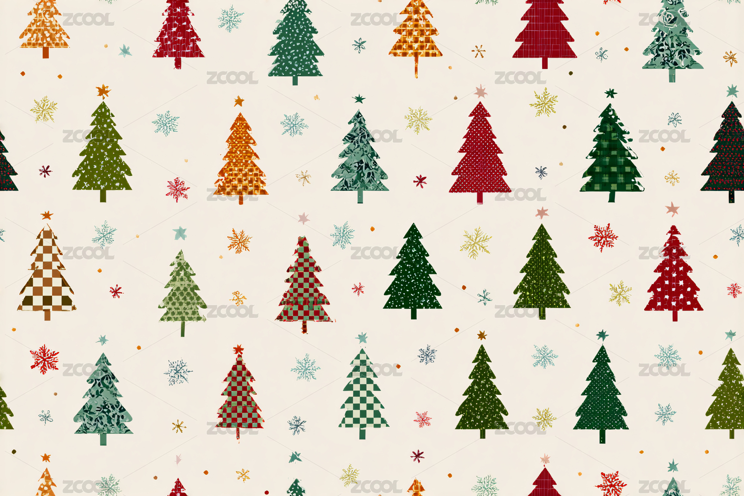 彩色圣诞树与雪花的节日图案