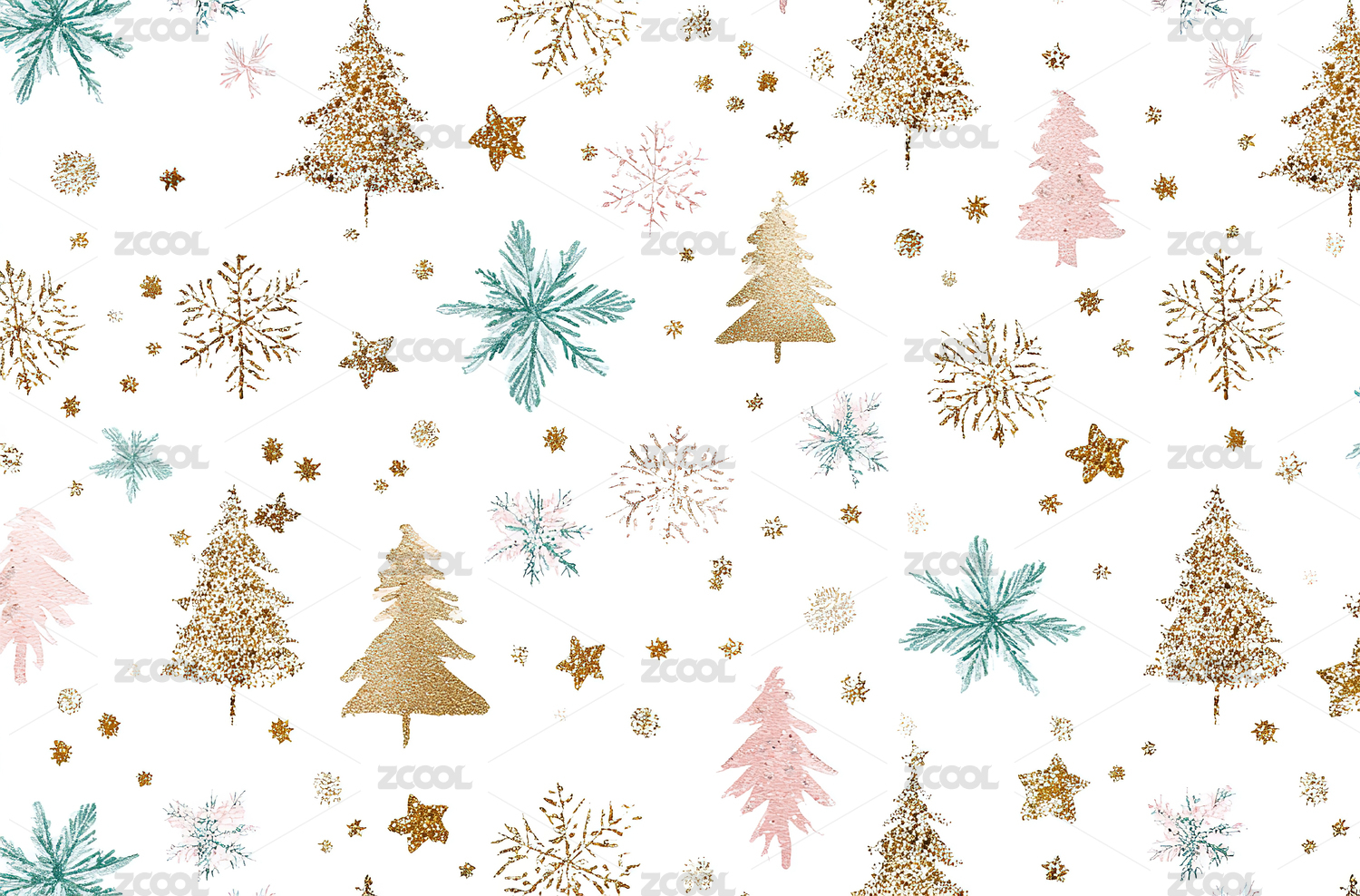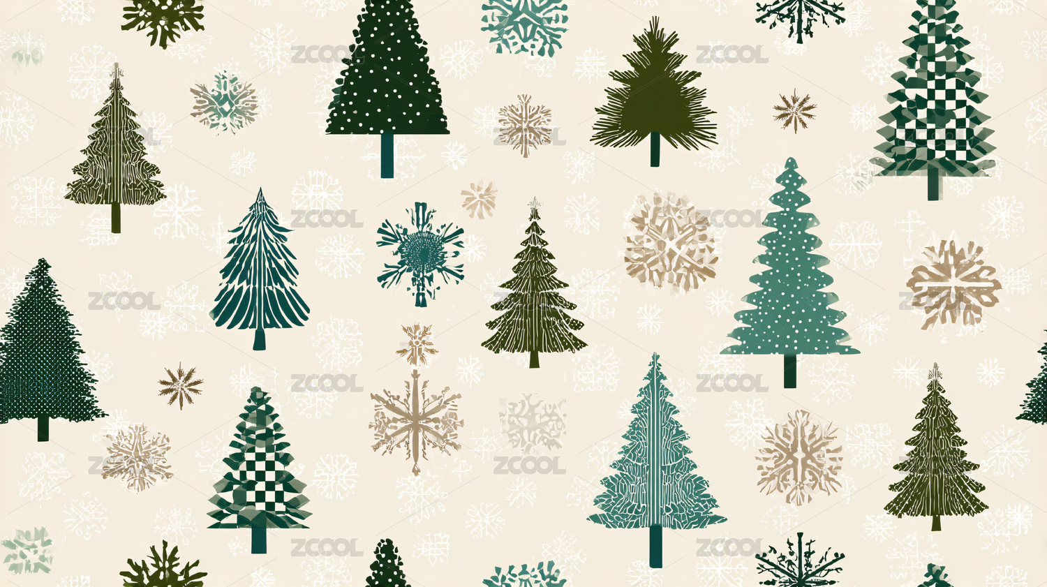 圣诞树与雪花的节日图案