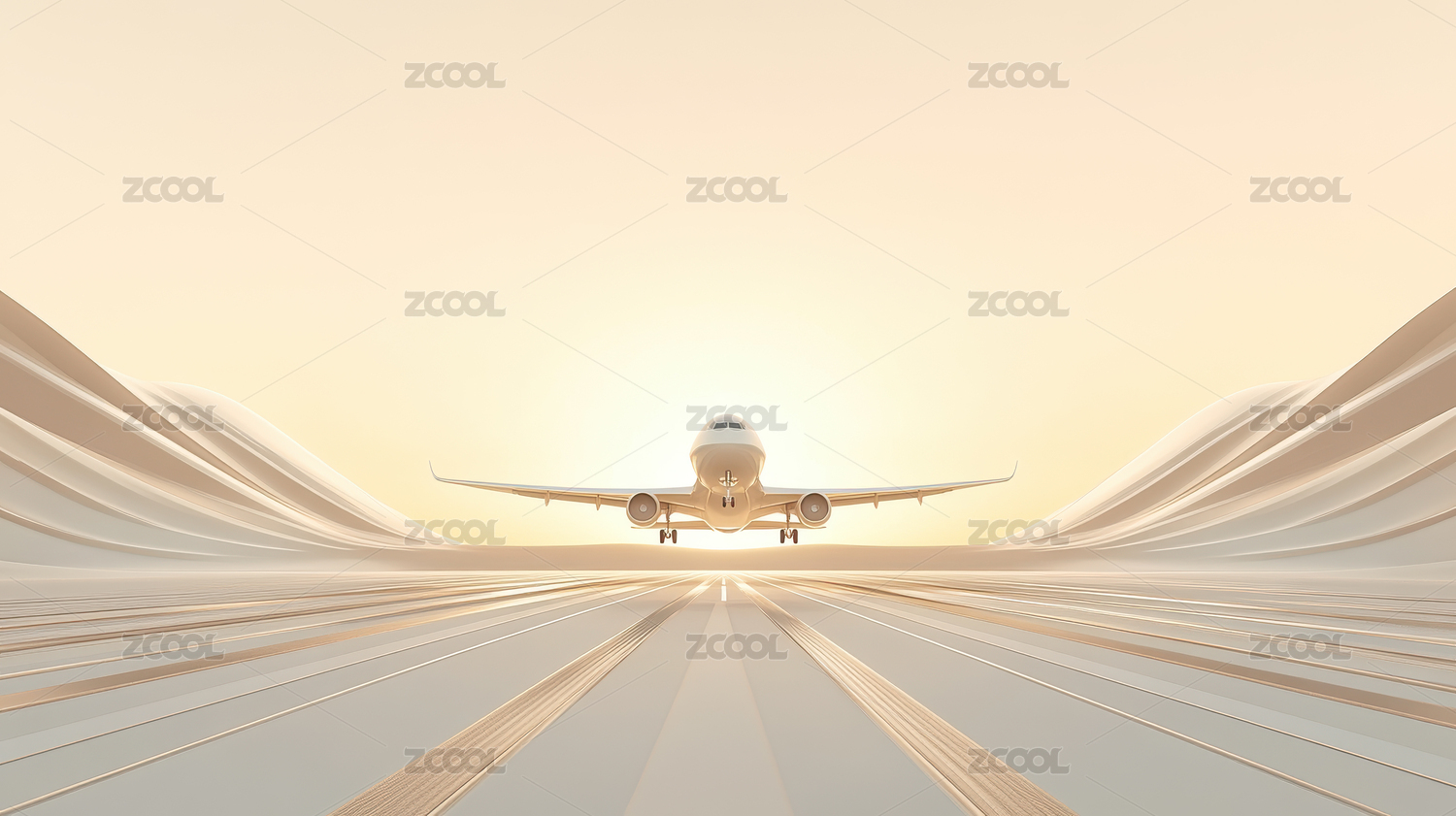 机场起飞的飞机插画