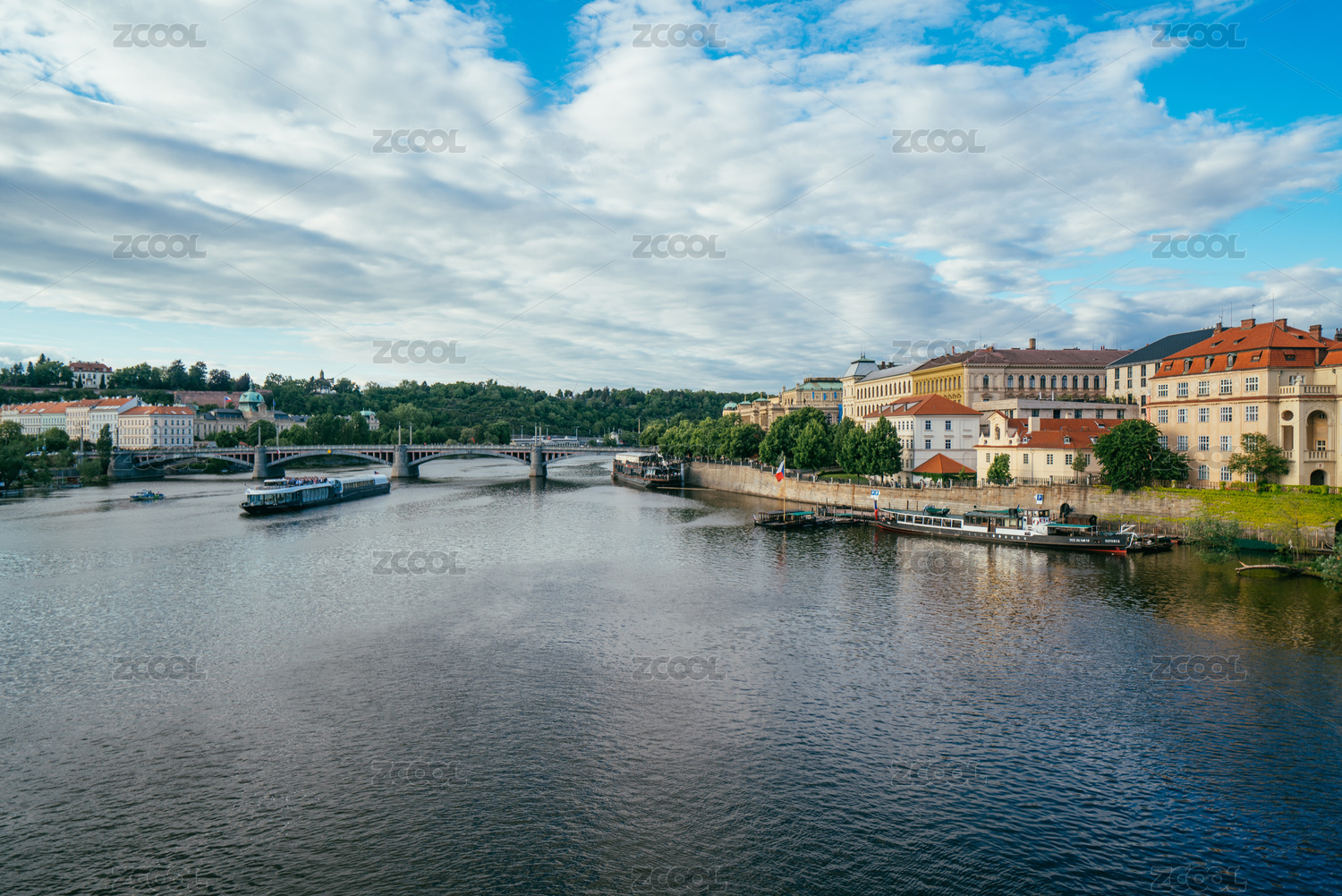 捷克共和国布拉格市伏尔塔瓦河沿岸风光