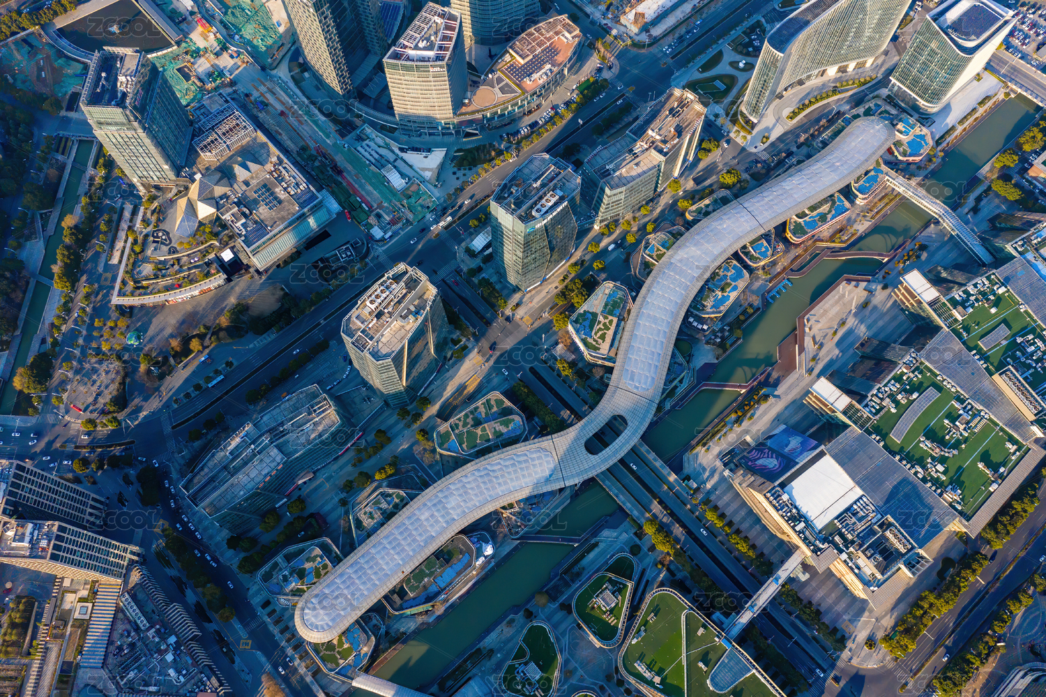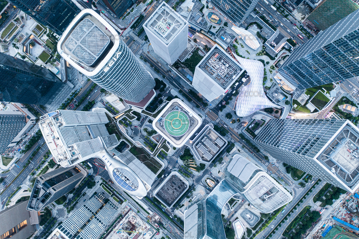俯拍北外滩来福士广场双子塔