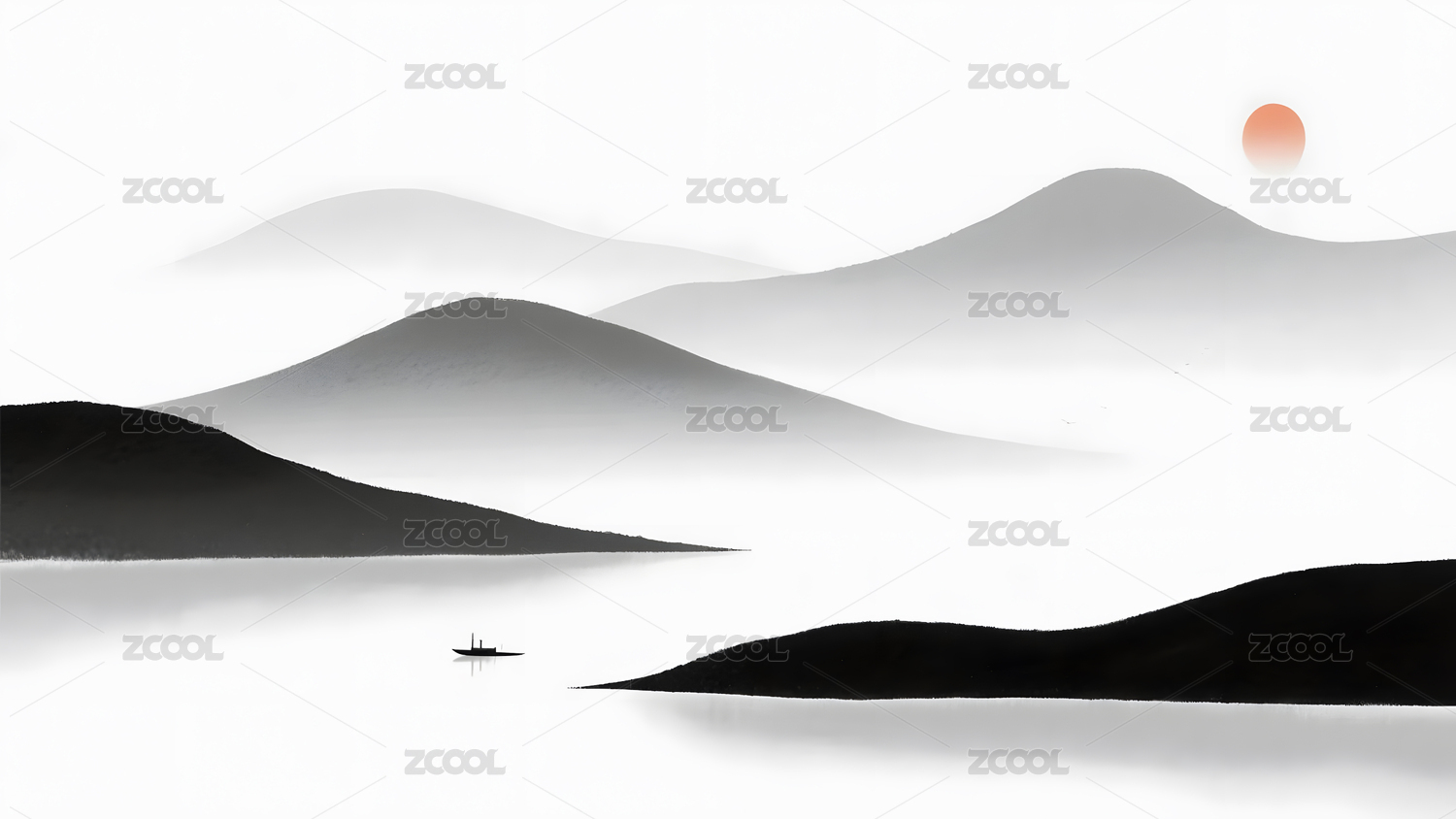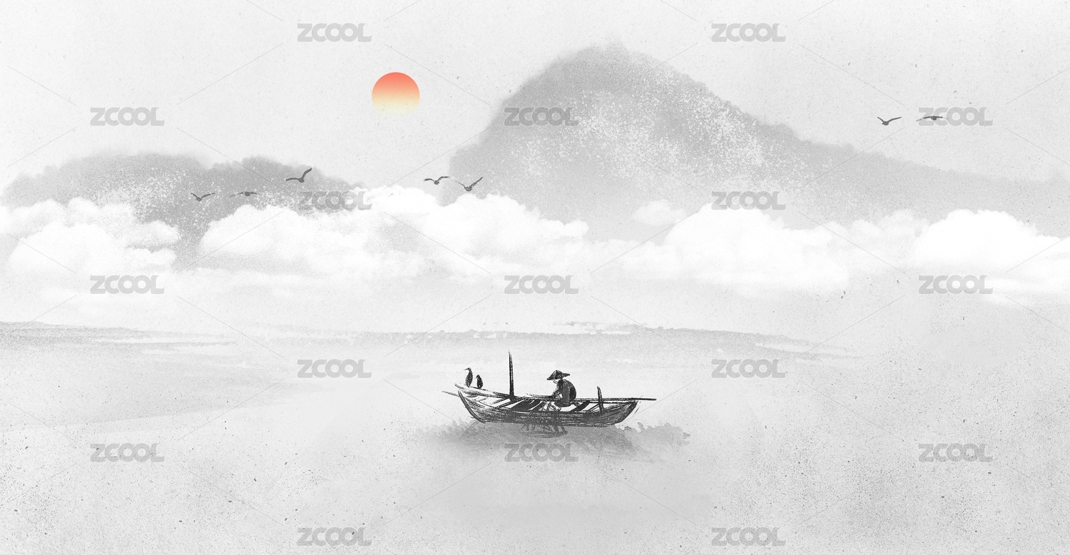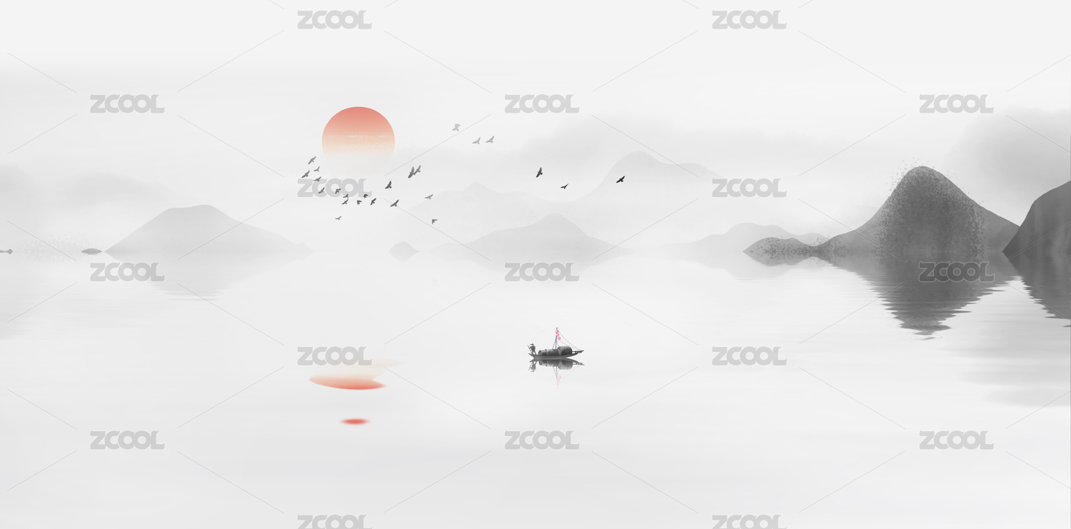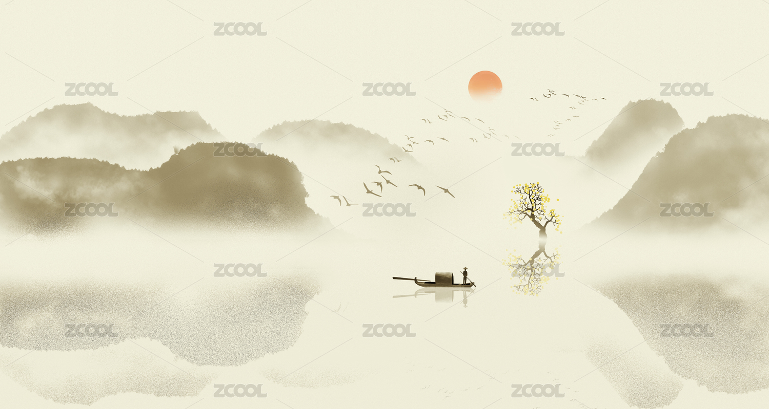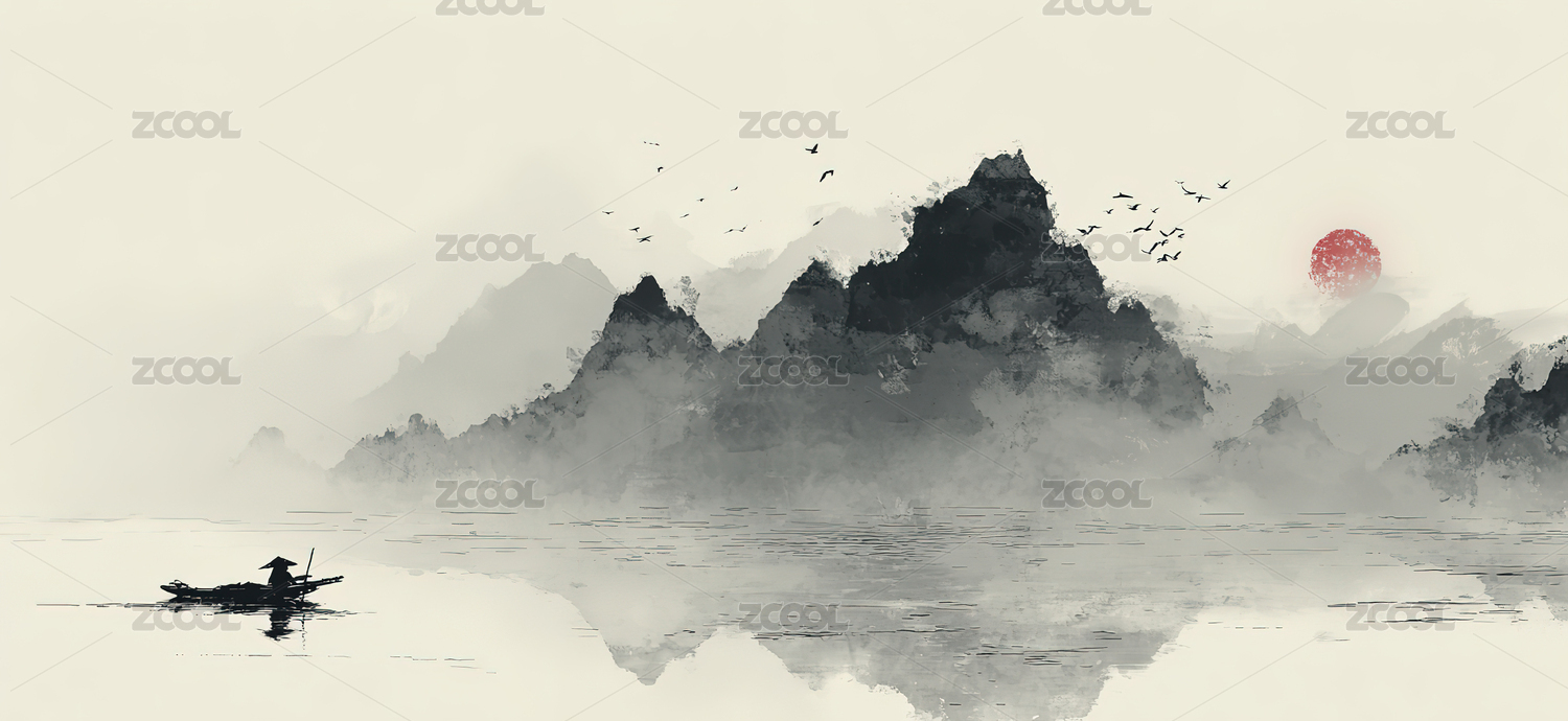 中国风意境水墨山水画背景