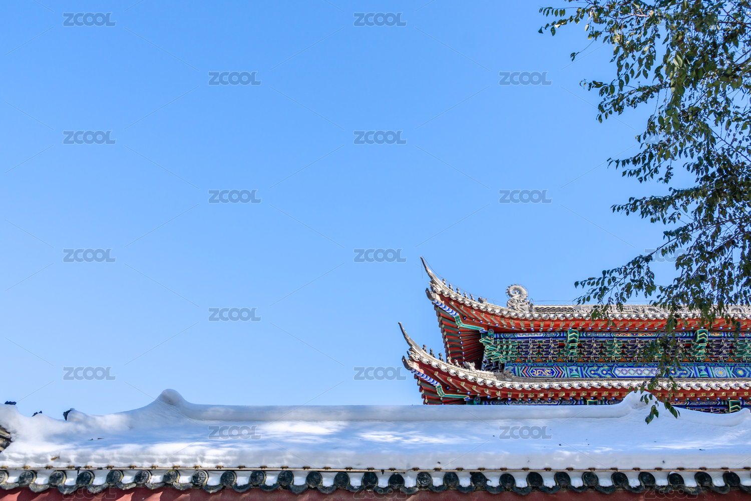 冬季雪天中国明清风格建筑局部