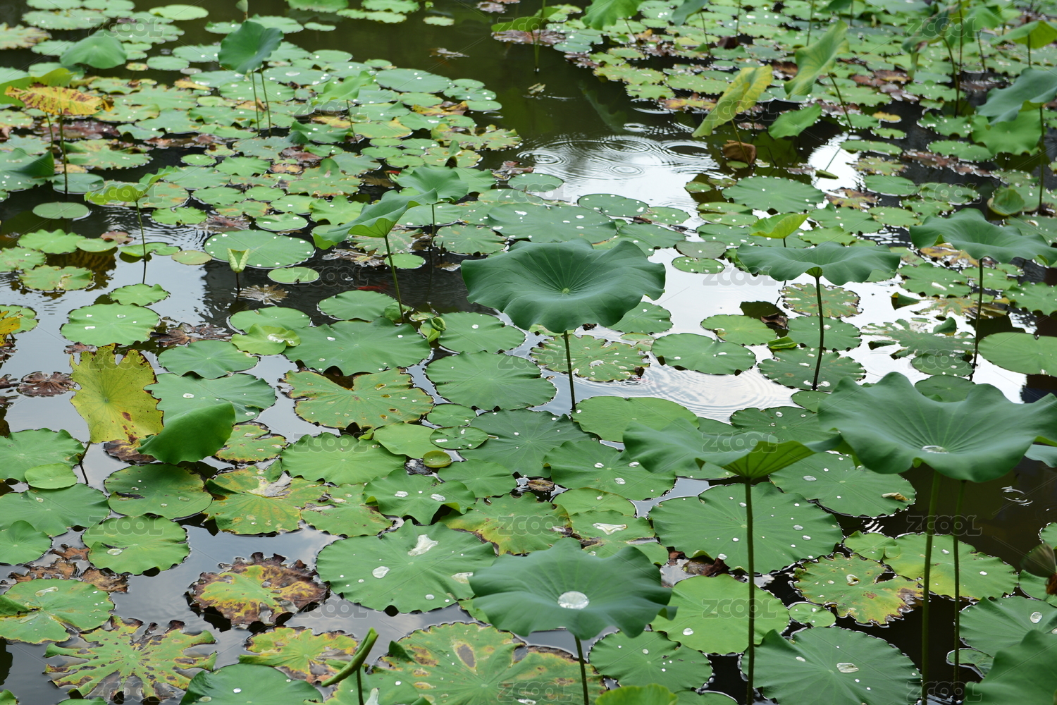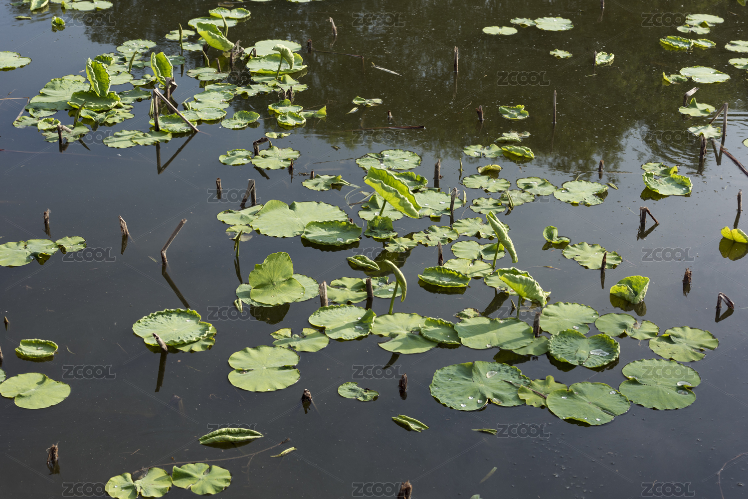 夏天池塘里绿色植物睡莲荷花风景的背景图