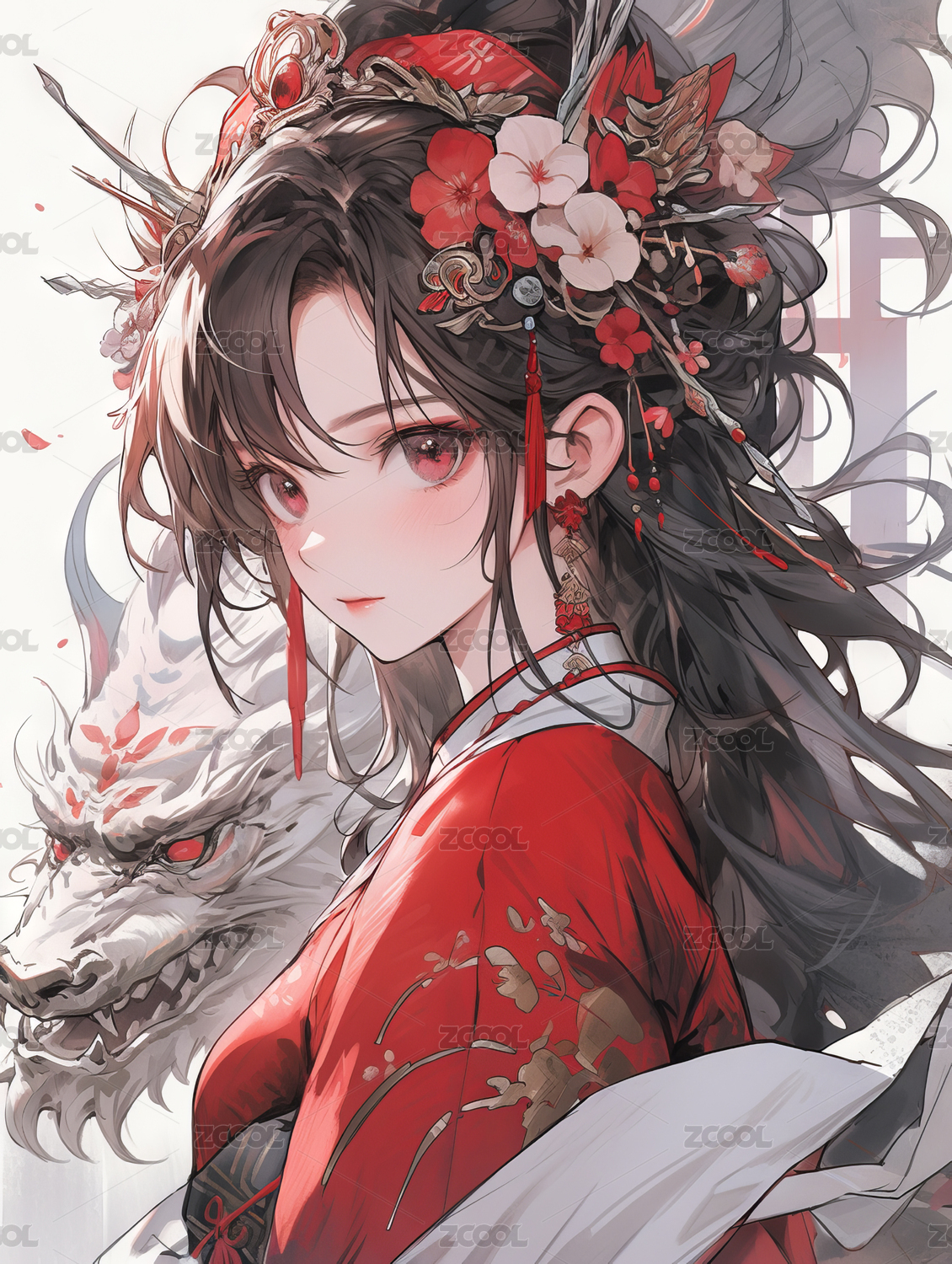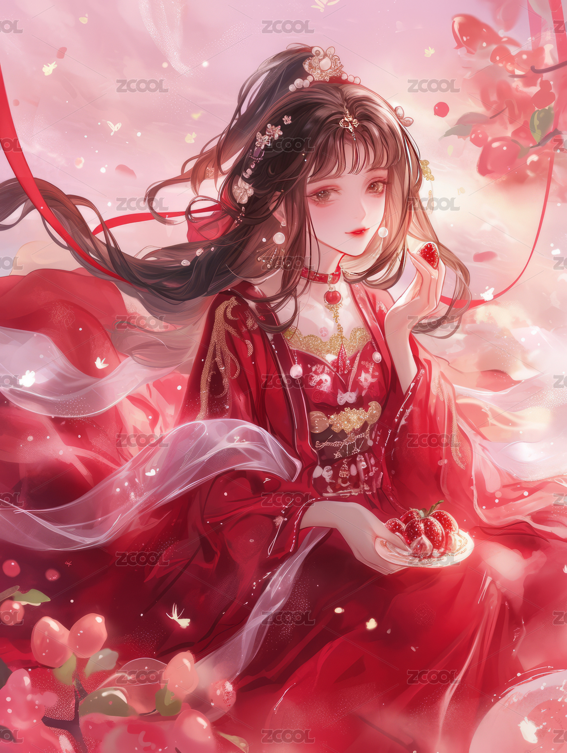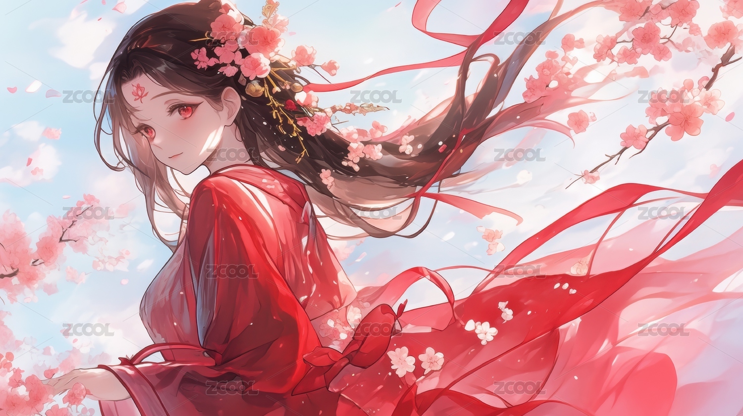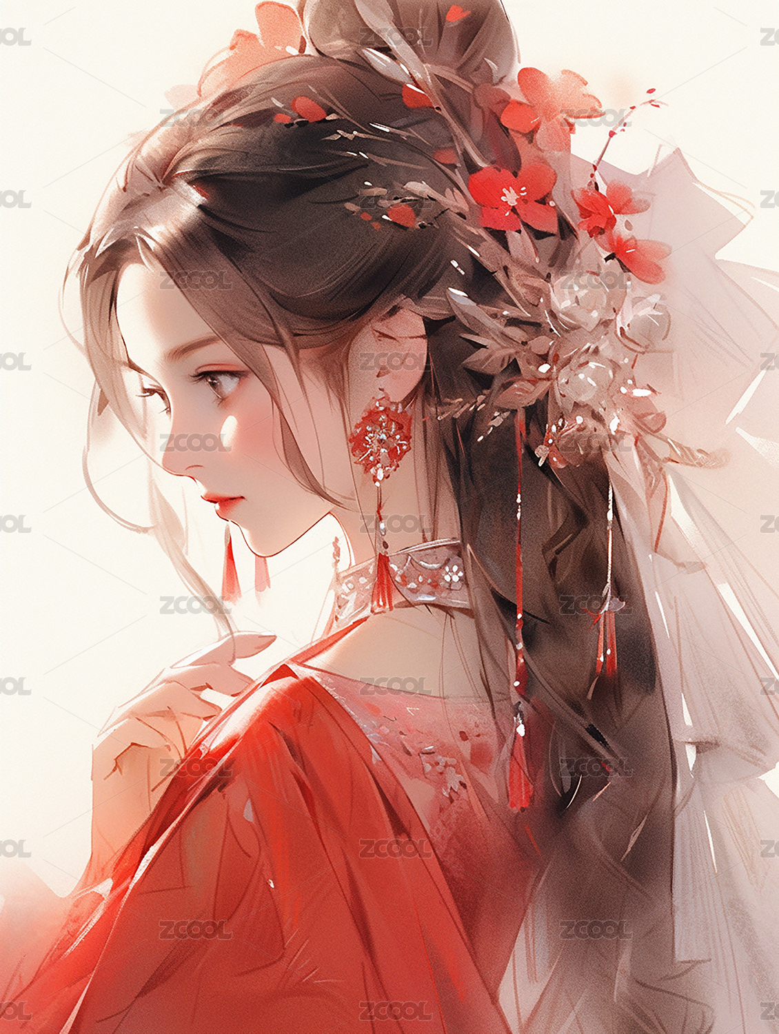 古风红衣婚嫁美女人物