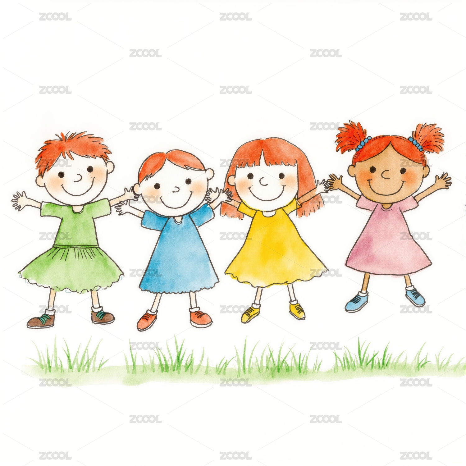 小清新风格快乐六一儿童节各国儿童插画人物元素