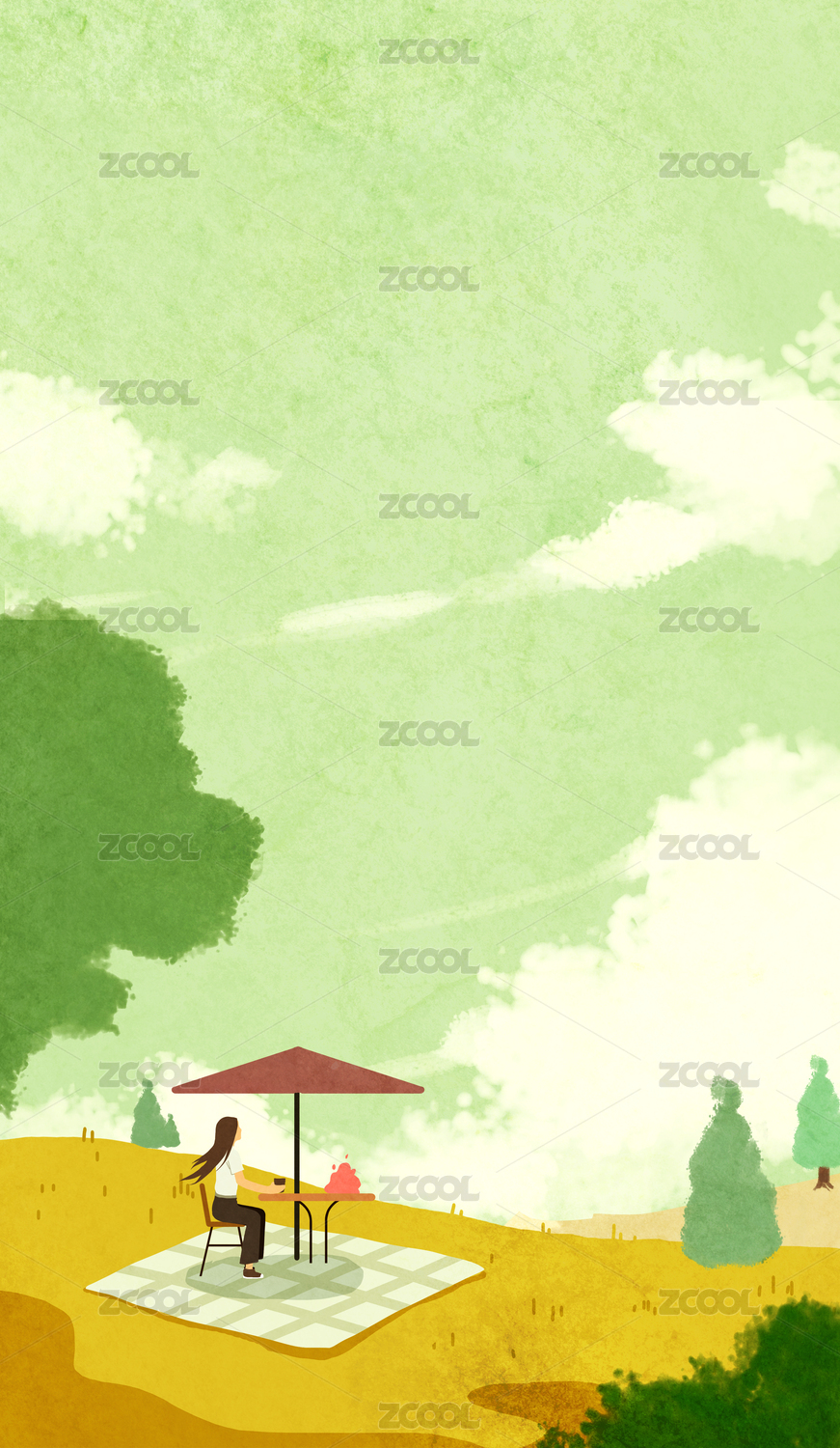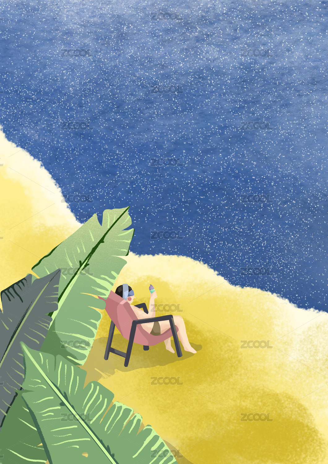 西瓜,芭蕉树,树叶,竹椅,插画,留白,夏天,海报,绿色,纳凉
