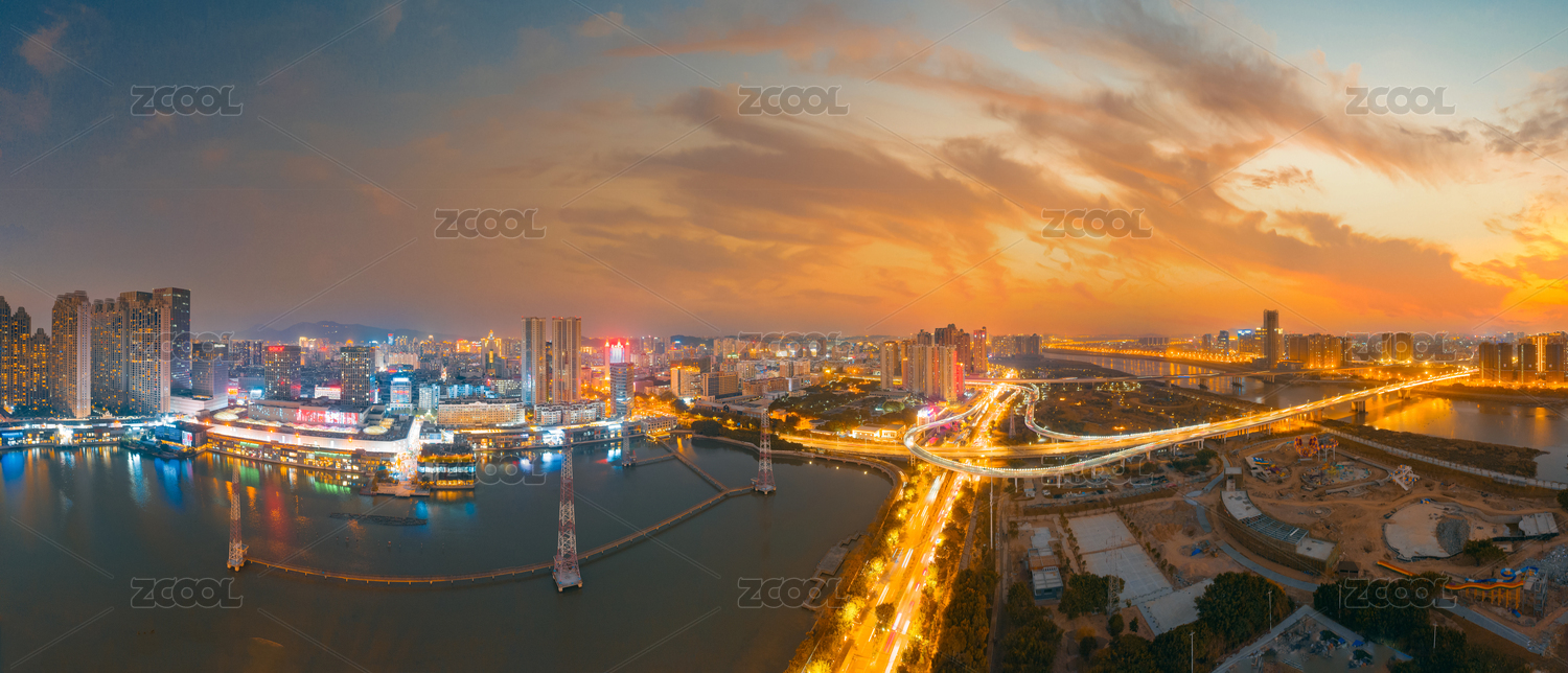 蓬江,西江,潮连,人才岛,全景,广东,江门,航拍,夜景,中国
