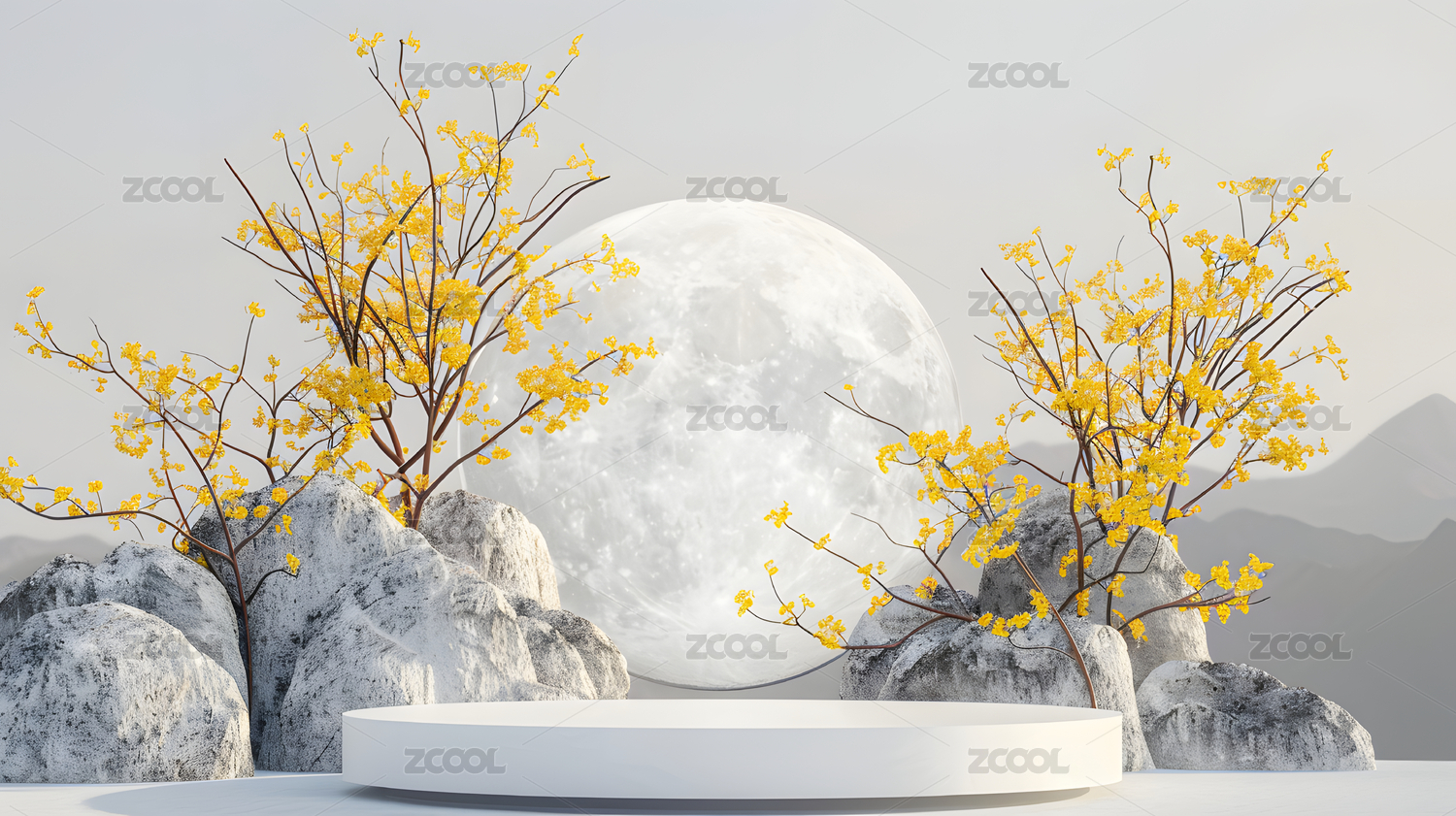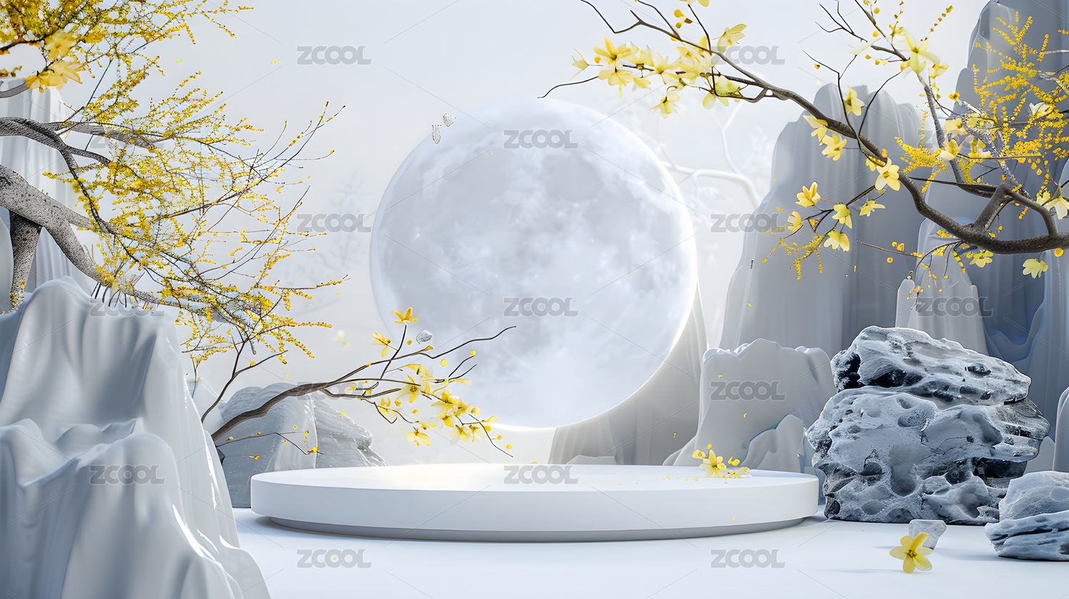 中秋,满月,皎月,产品,展示台,电商,促销,背景,典雅,单个