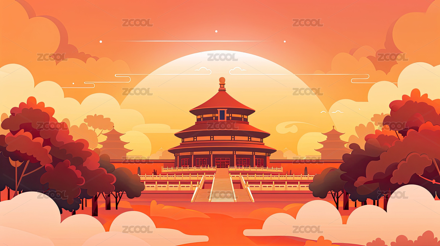 国庆节日天坛花朵手绘插画