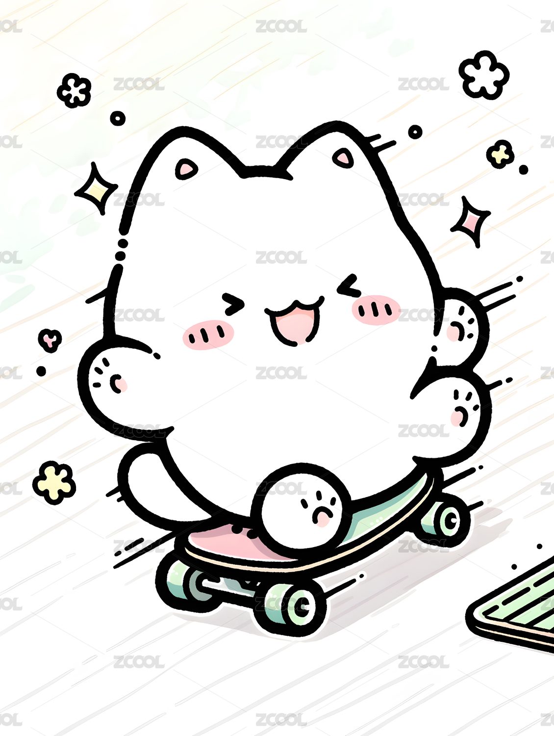 跑步机上跑步的可爱猫咪猫猫插画设计形象