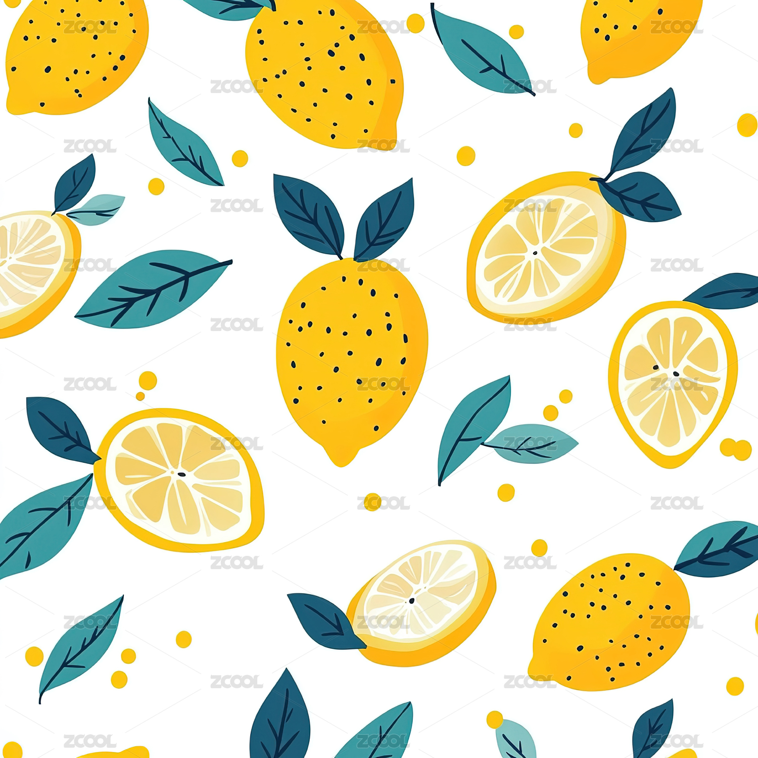 西瓜,橙子,橘子,水果,扁平化,叶子,线条,描边,无缝,背景
