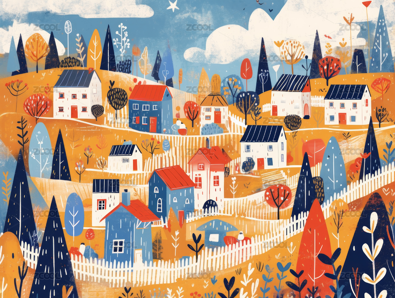 民宿,花海,乡村,盛开,夏天,茂盛,紫色,宁静,小鹿,房屋