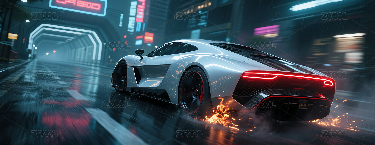 未来都市的赛博朋克跑车主题
