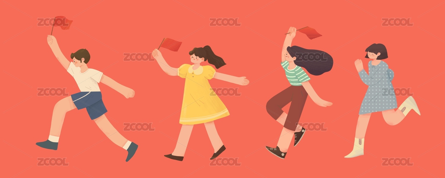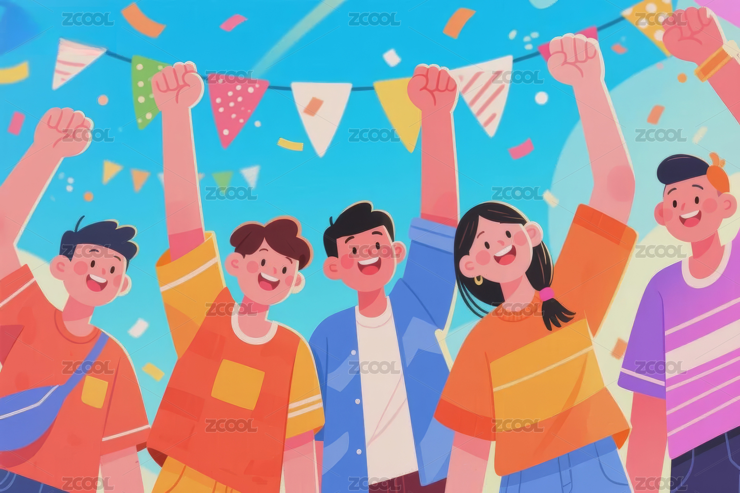 儿童节舞台孩子表演节目矢量插画竖版无字