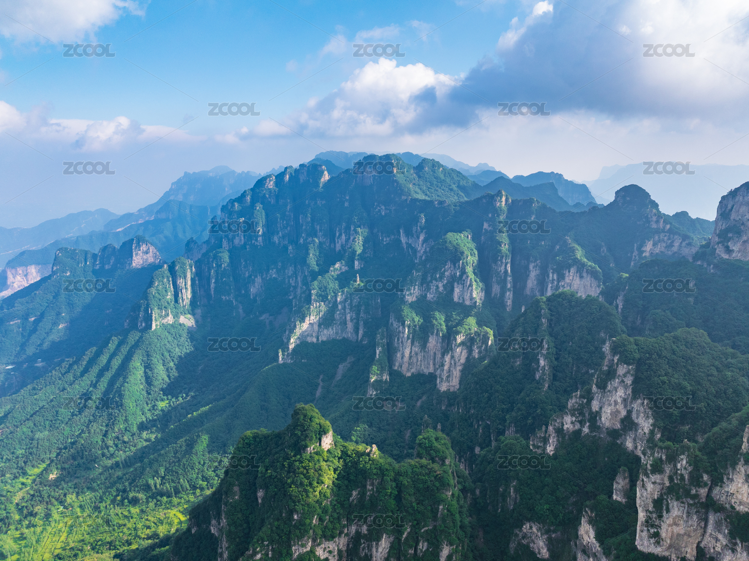 秋天晴空下的中国湖南张家界天门山景区延绵起伏的崇山峻岭