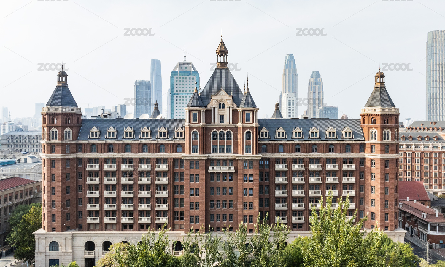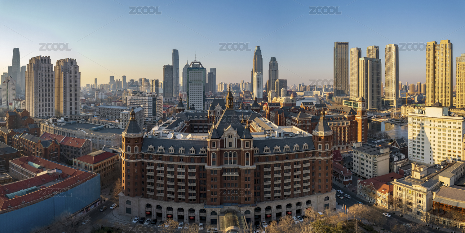 天津海河边泰安道旅游景区城市建筑风光航拍