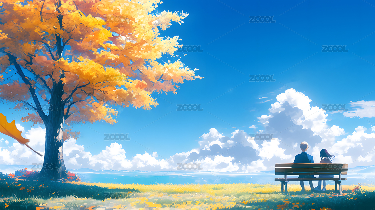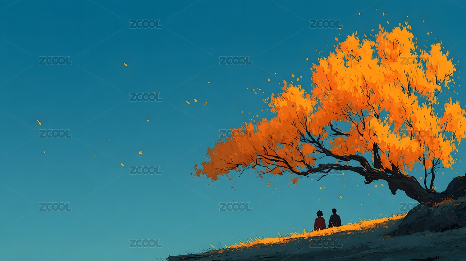 秋日树下两人静坐
