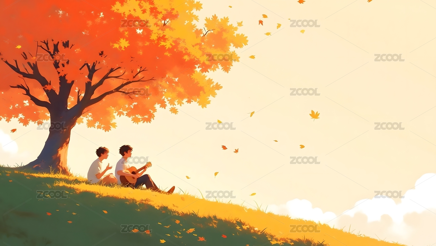 秋日树下弹吉他