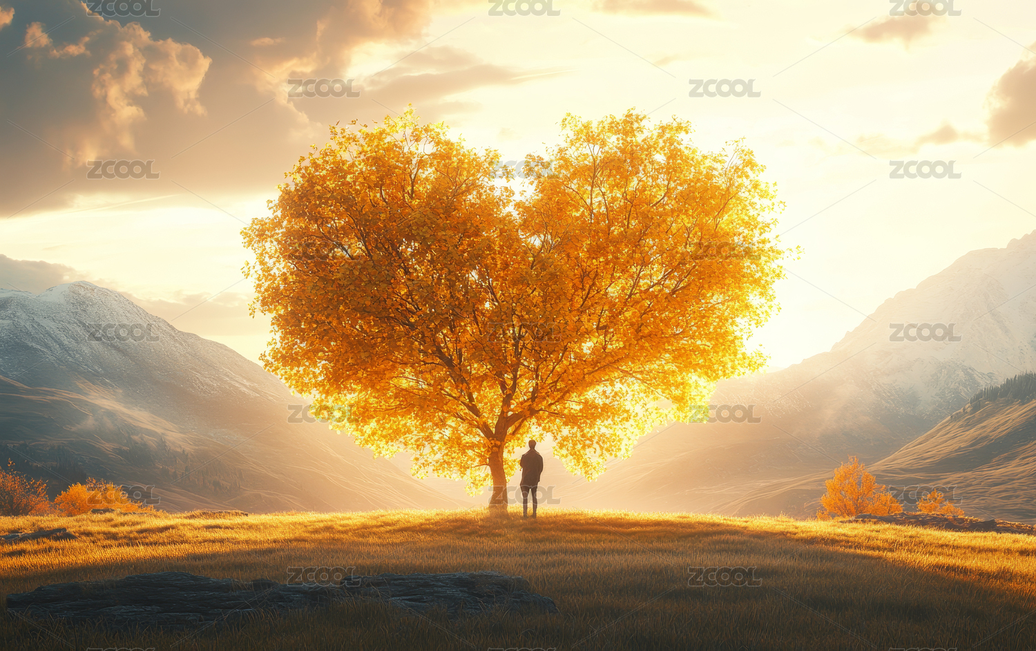 秋季大树女孩插画