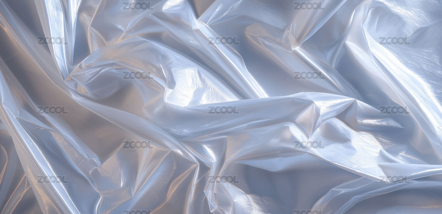银白褶皱塑料纹理呈现艺术质感的装饰视觉