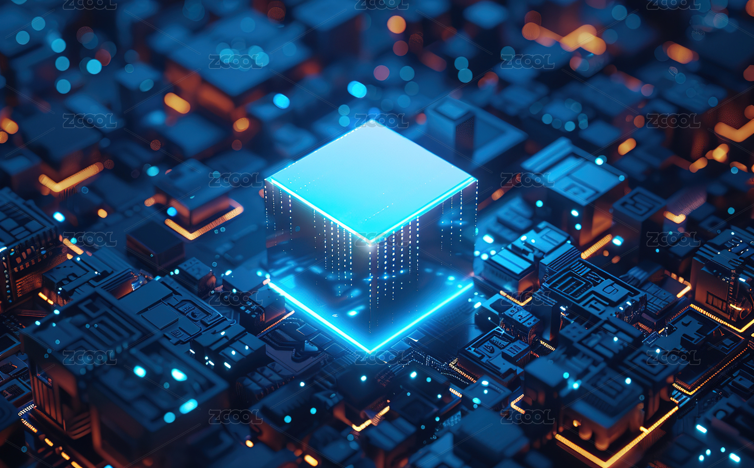 3D电脑芯片科技背景