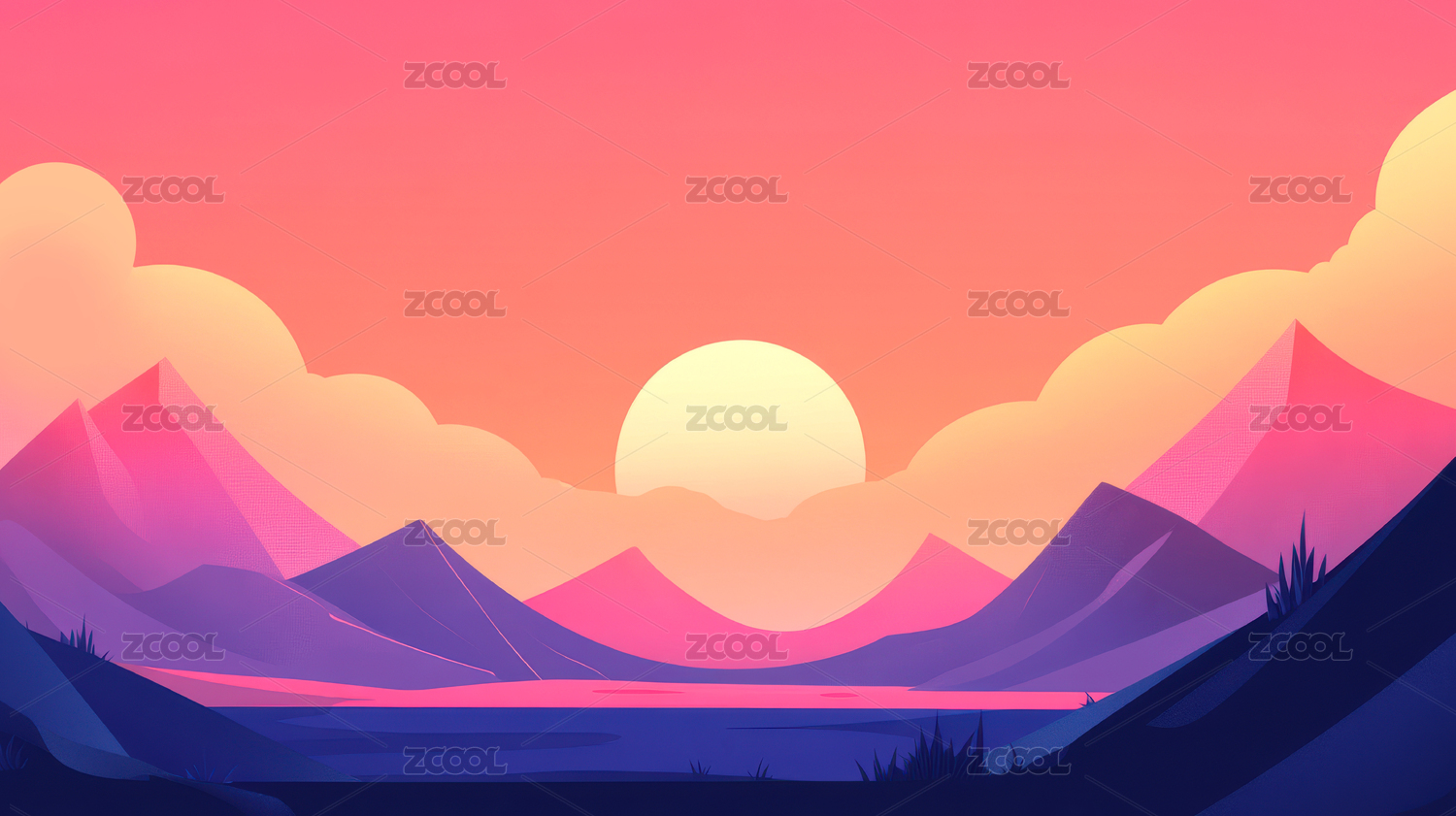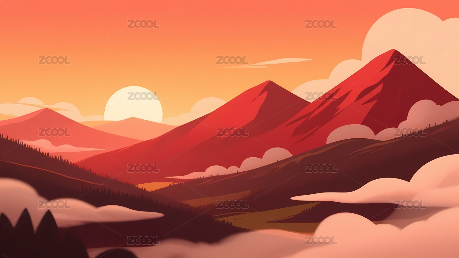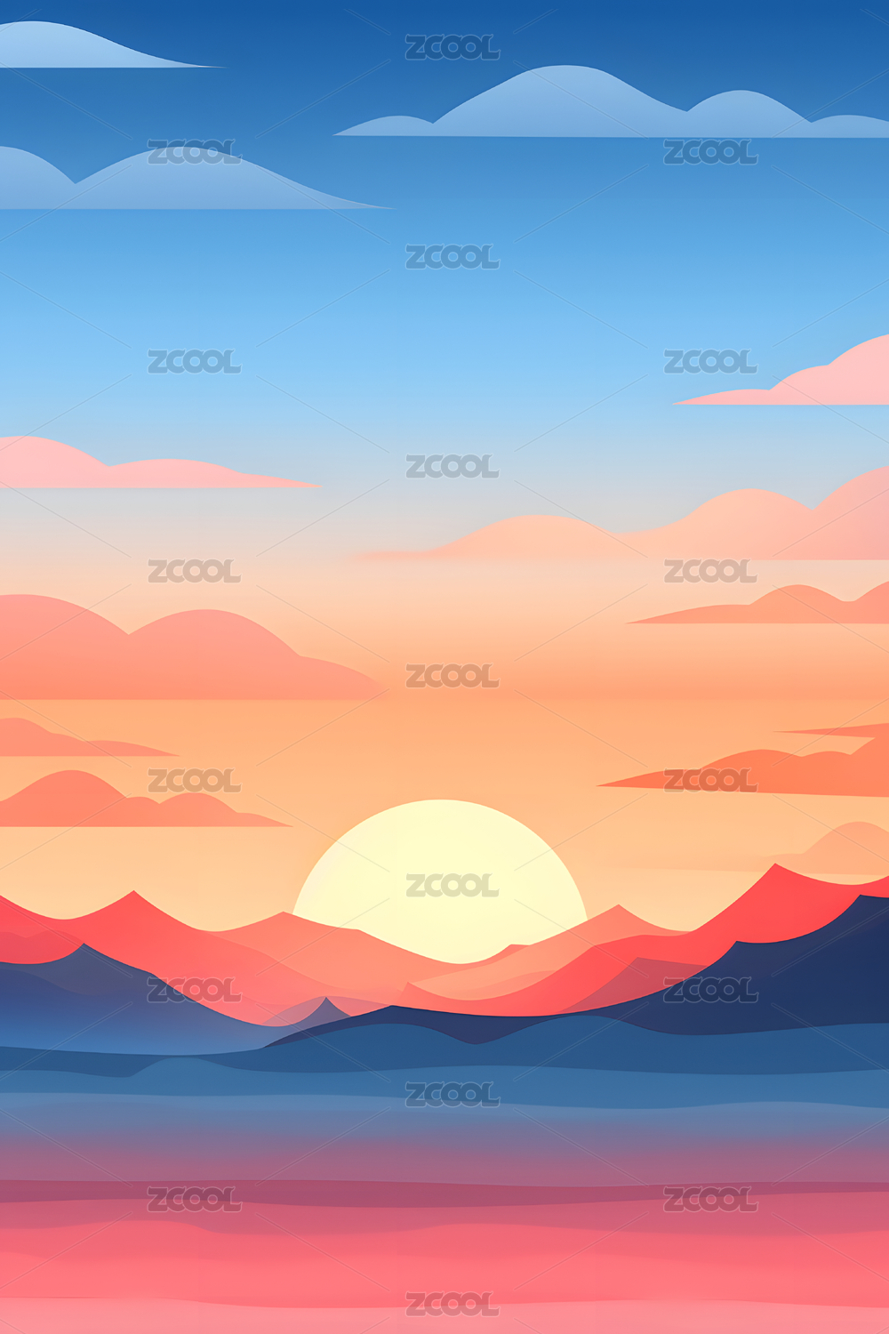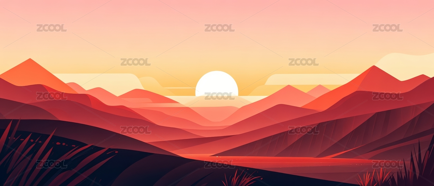 日落日出卡通插画背景壁纸