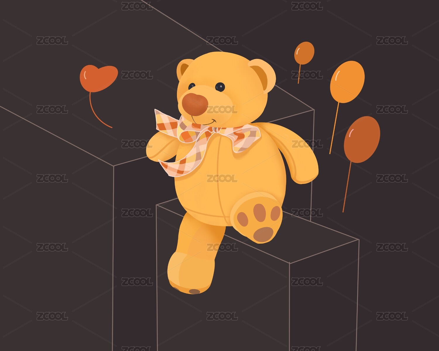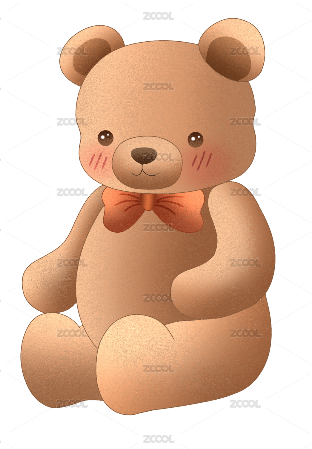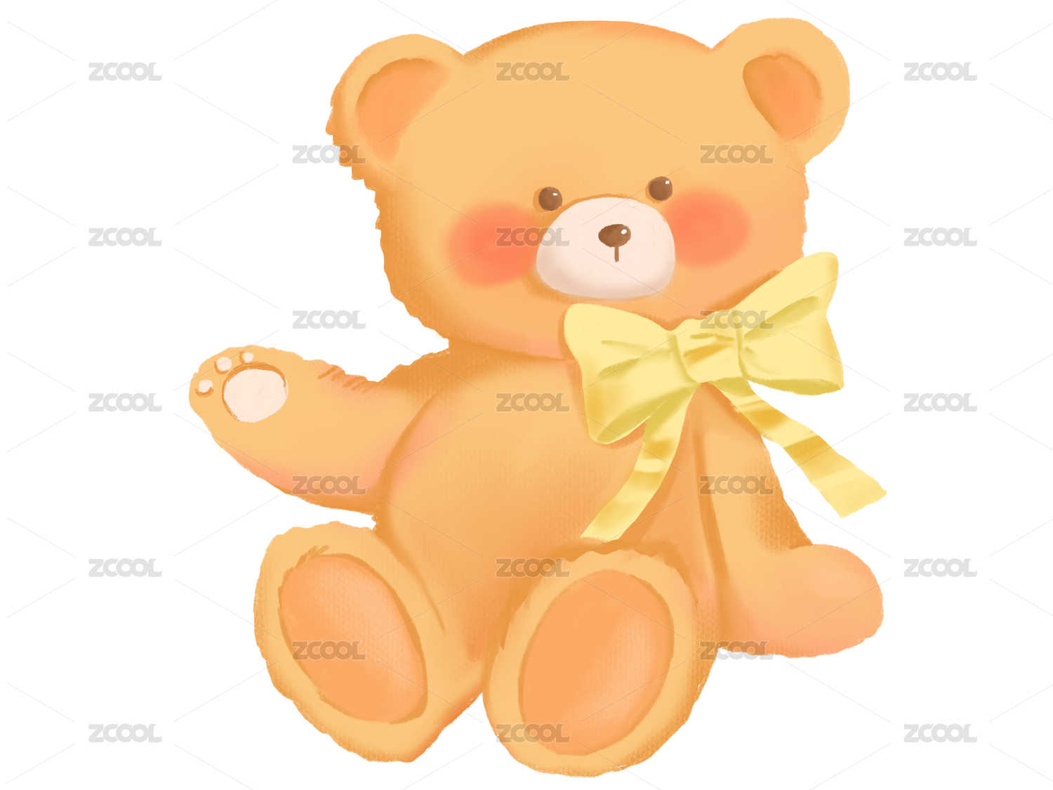 亮黄色唯美可爱玩具熊黄色蝴蝶结元素