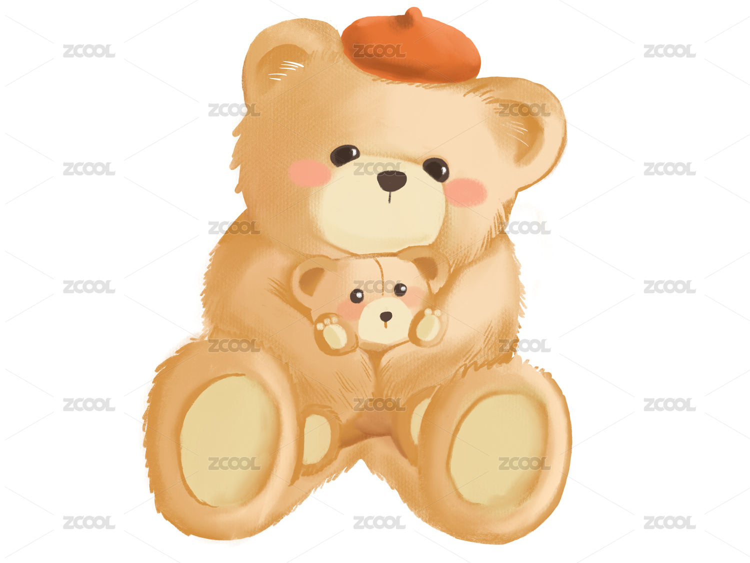 亮黄色唯美可爱玩具熊贝雷帽和小熊元素