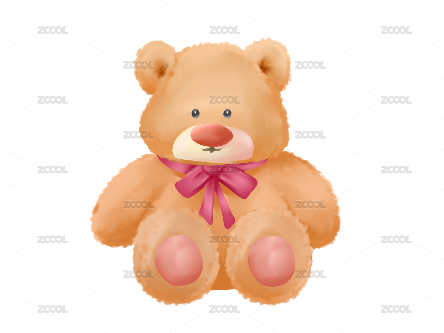 唯美可爱玩具熊戴粉红色蝴蝶结的可爱布熊