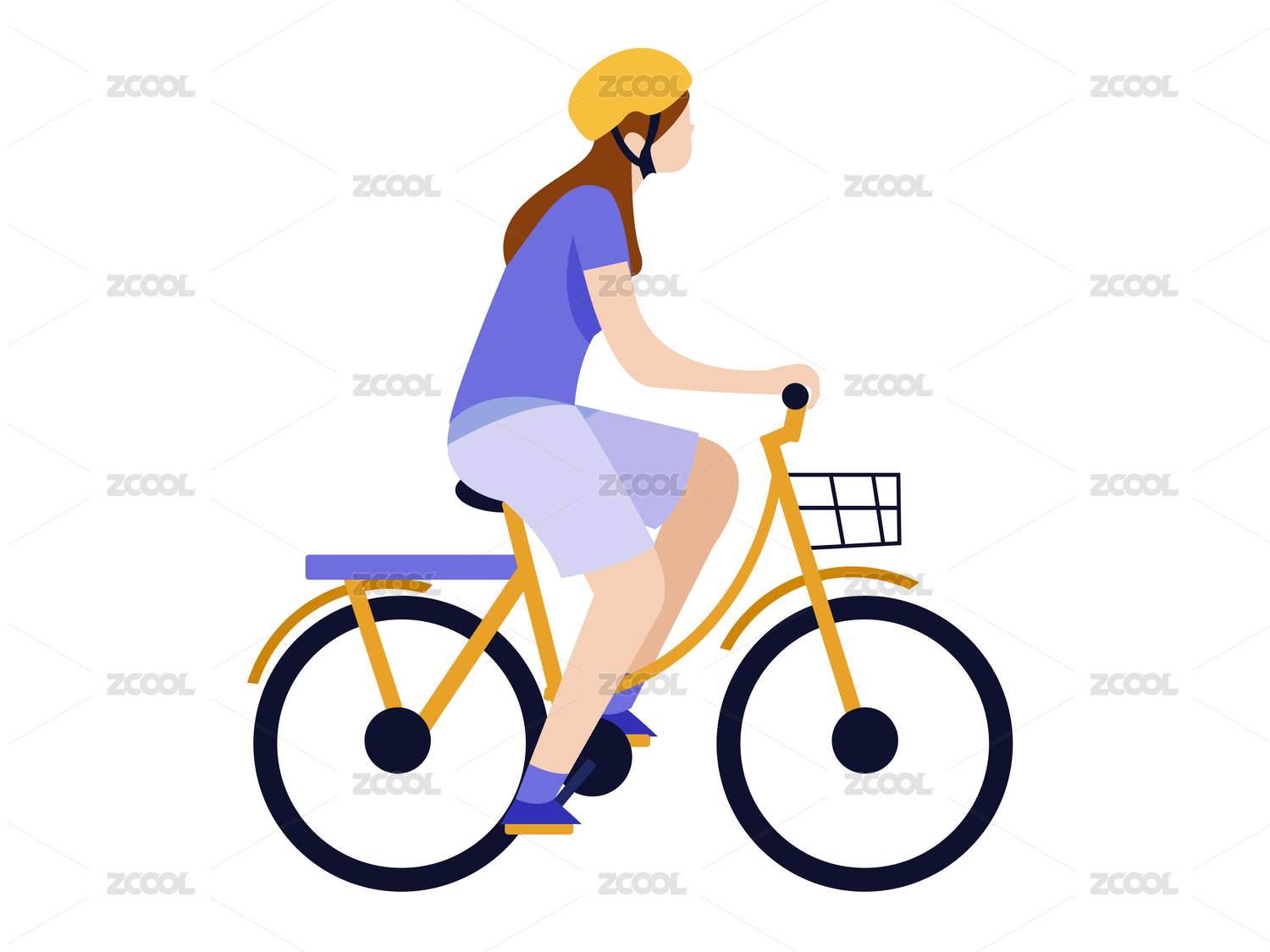 女孩骑自行车人物扁平插画元素