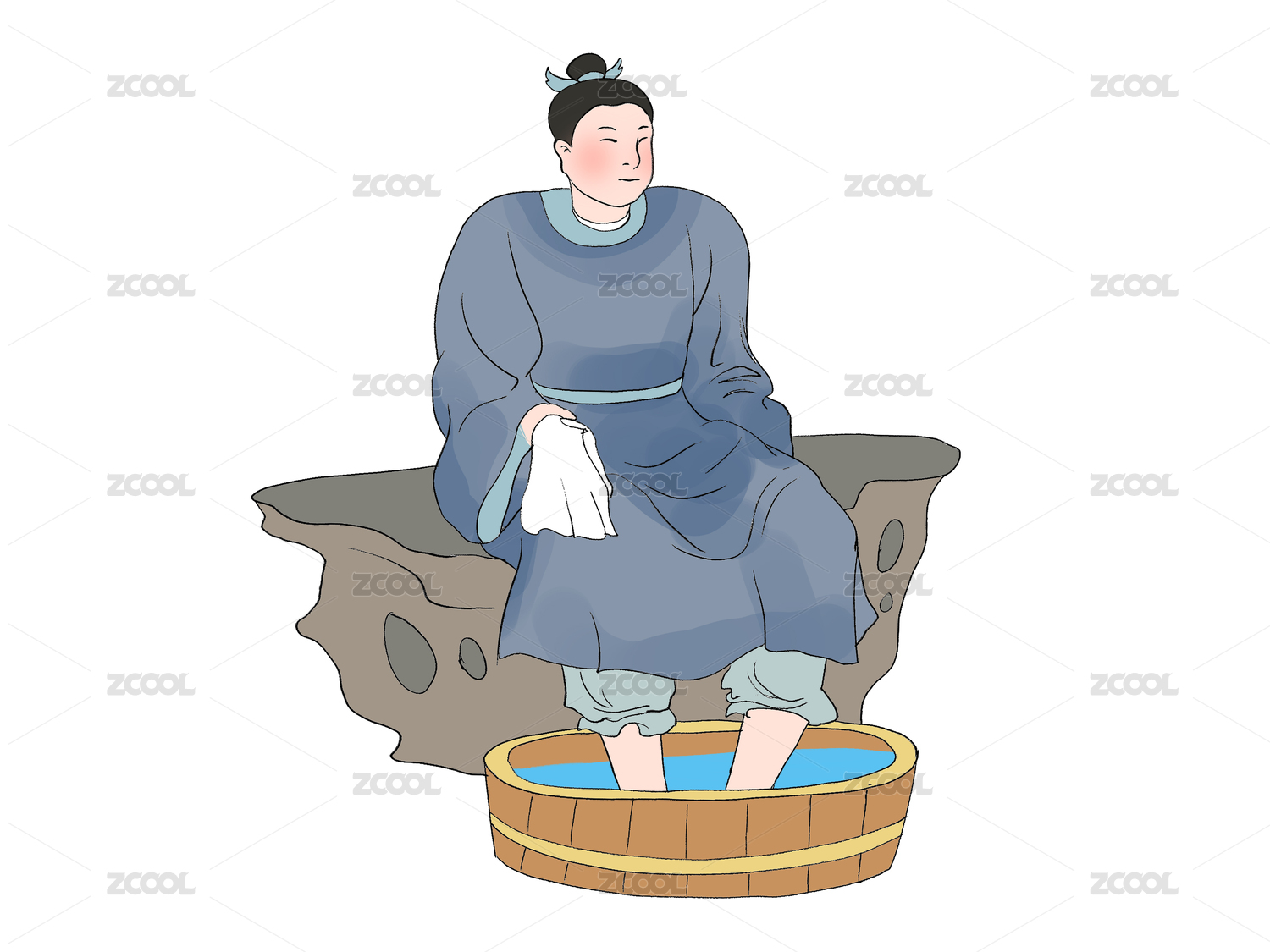 养生,泡脚,洗脚,古风,古代,卡通,健康,保健,理疗,木盆