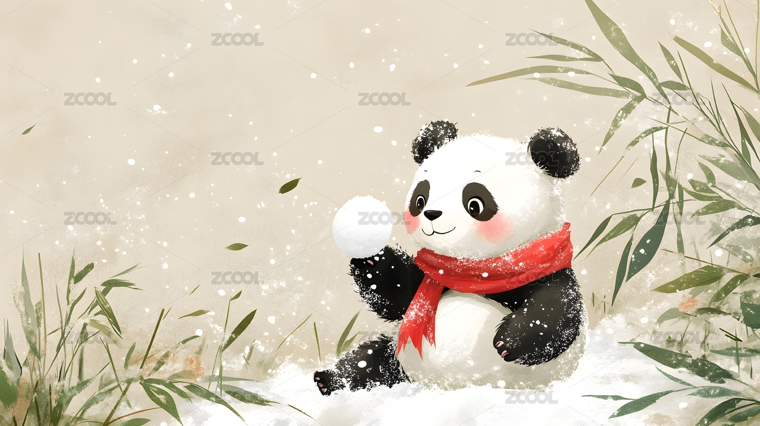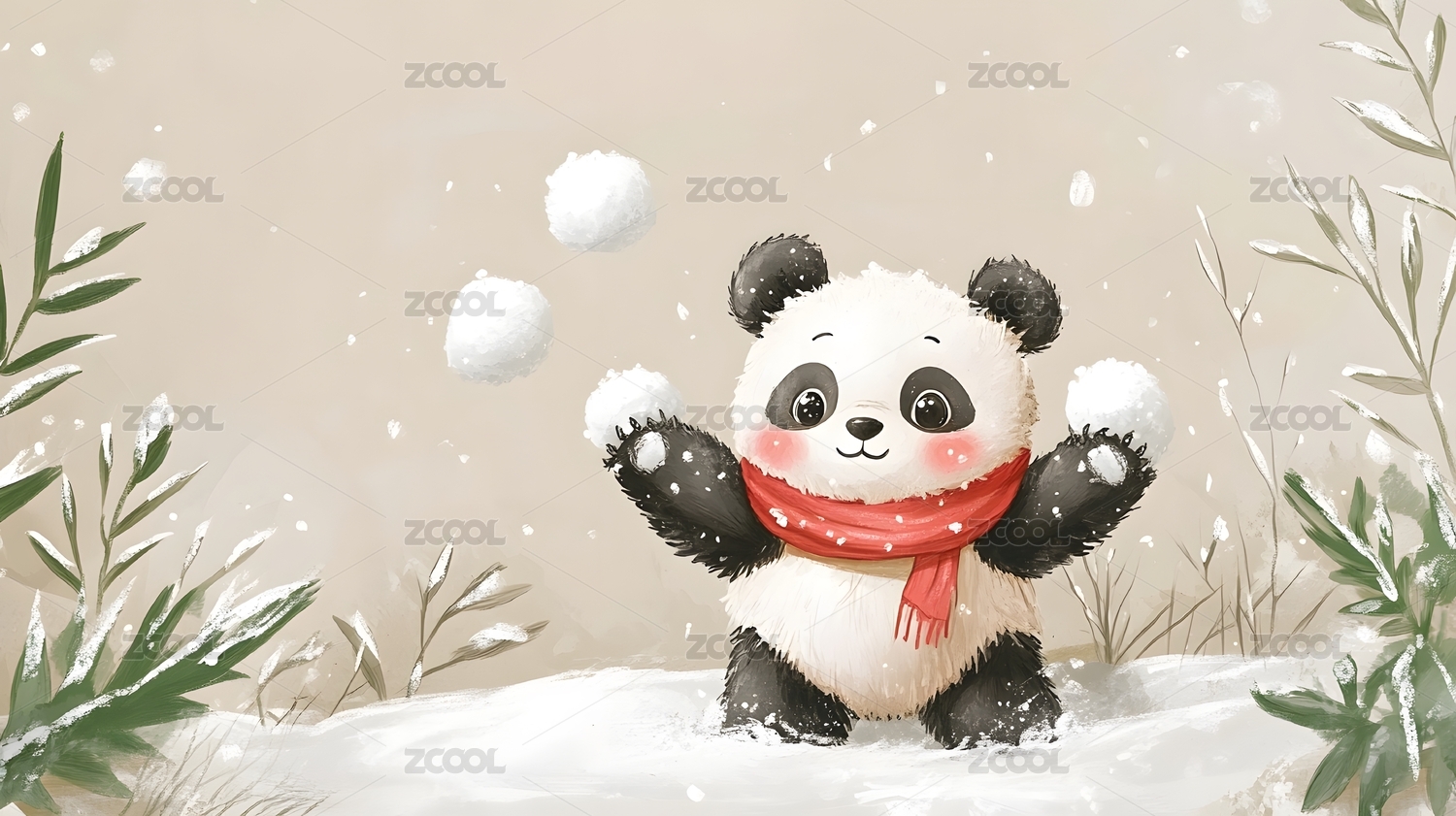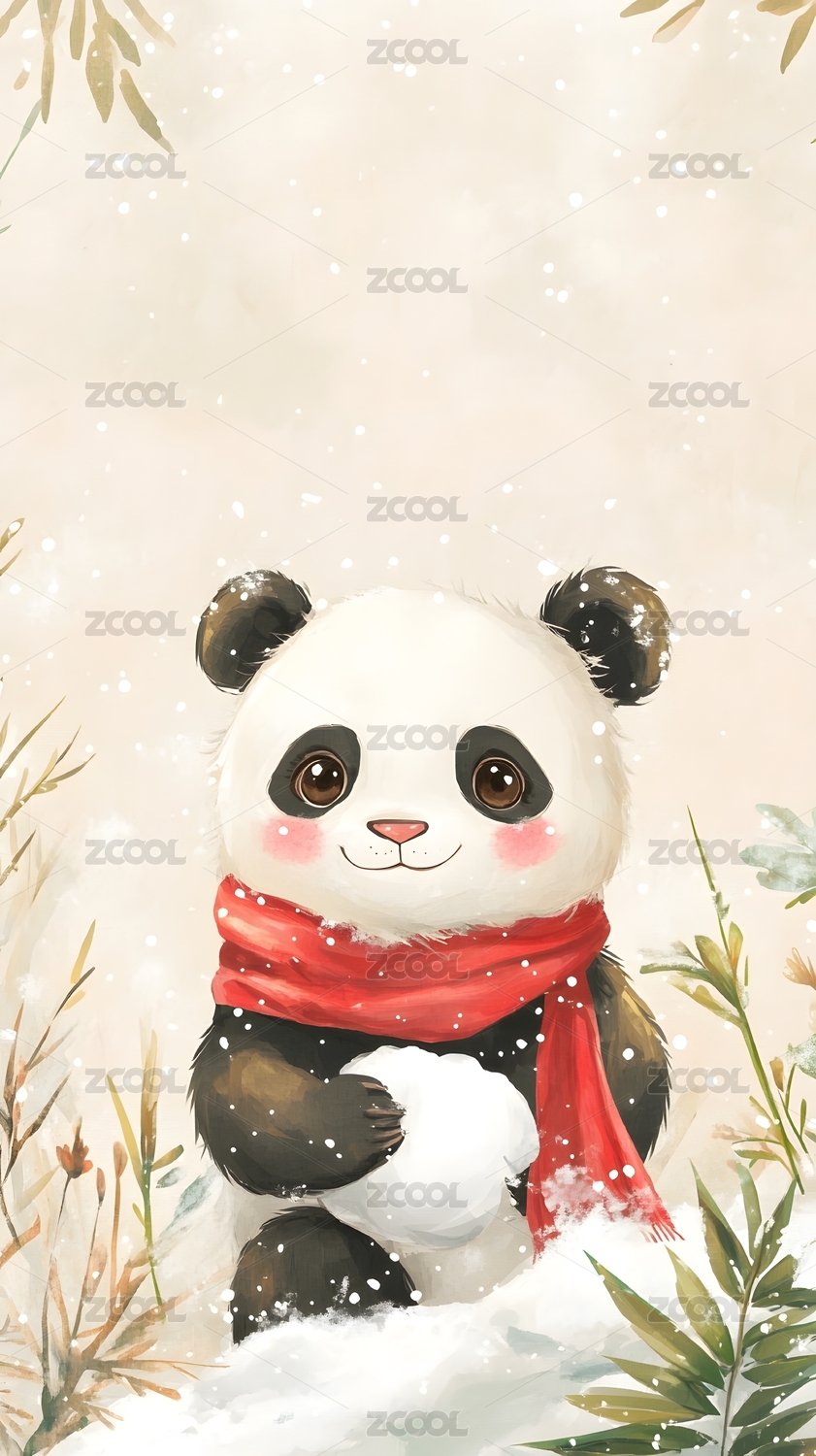 新年冬天节气小雪熊猫主题插画