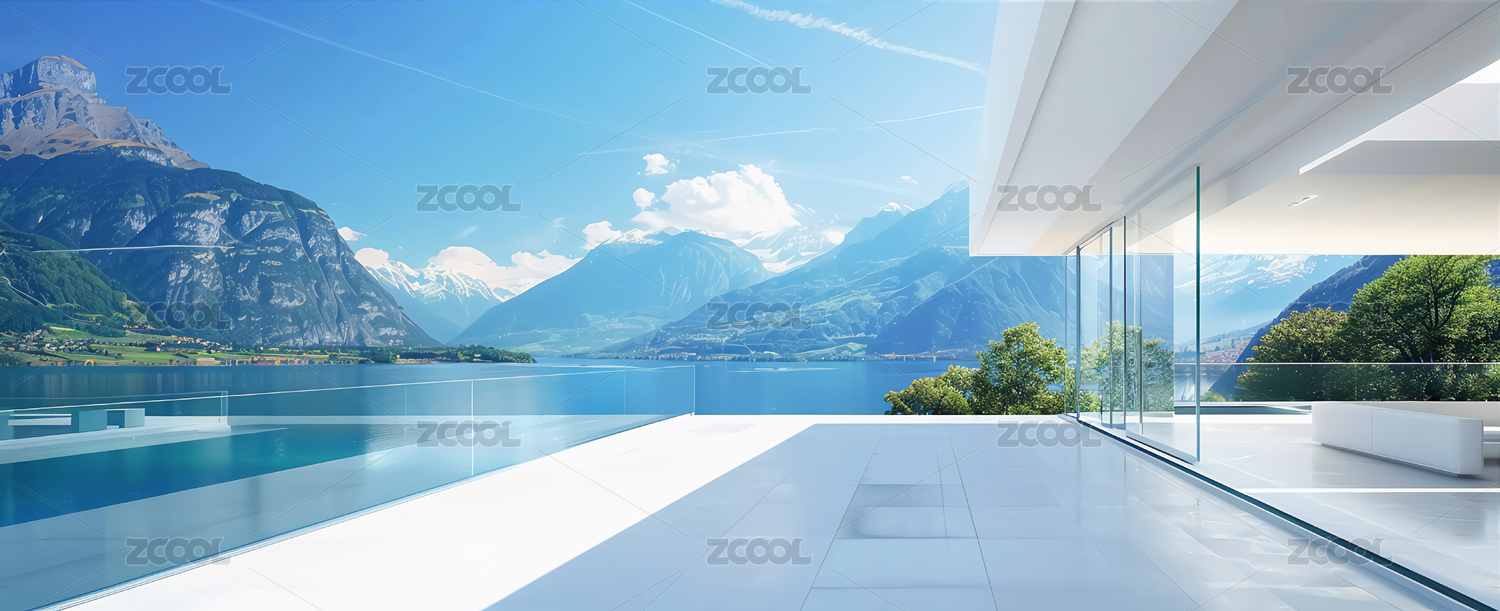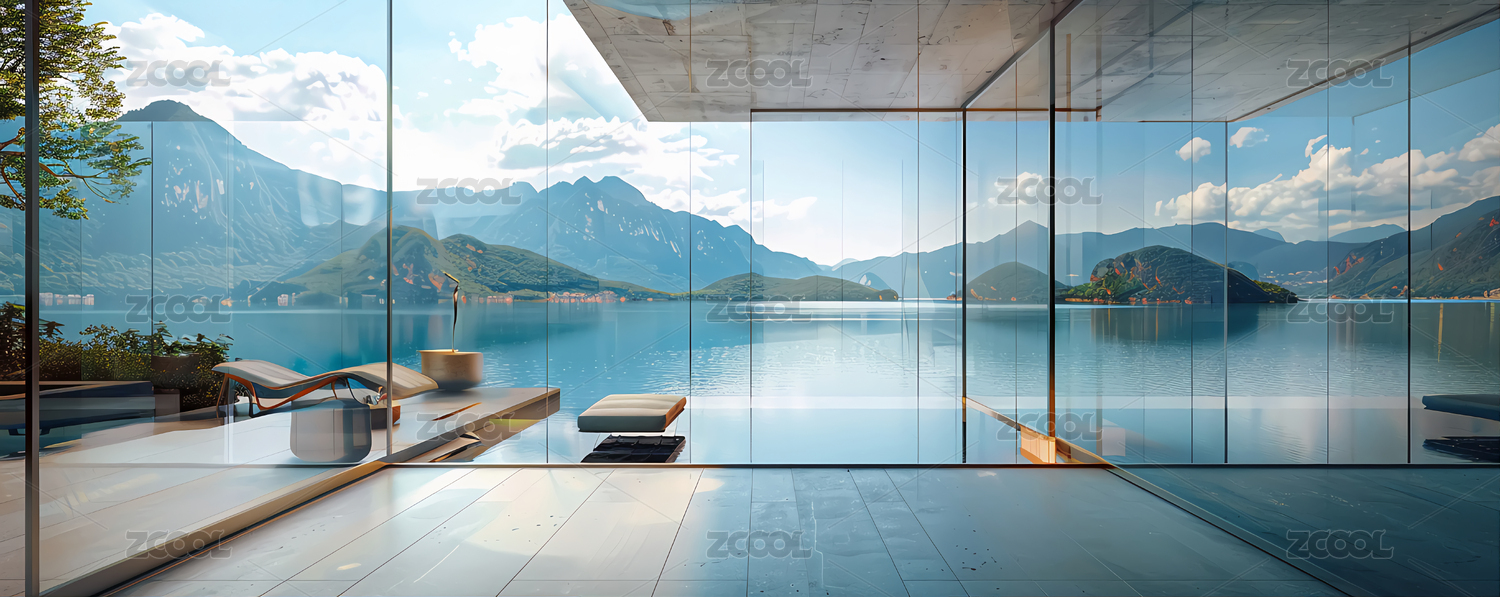 背景,酒店,民宿,3D,设计,风景,山脉,水,倒影,数字